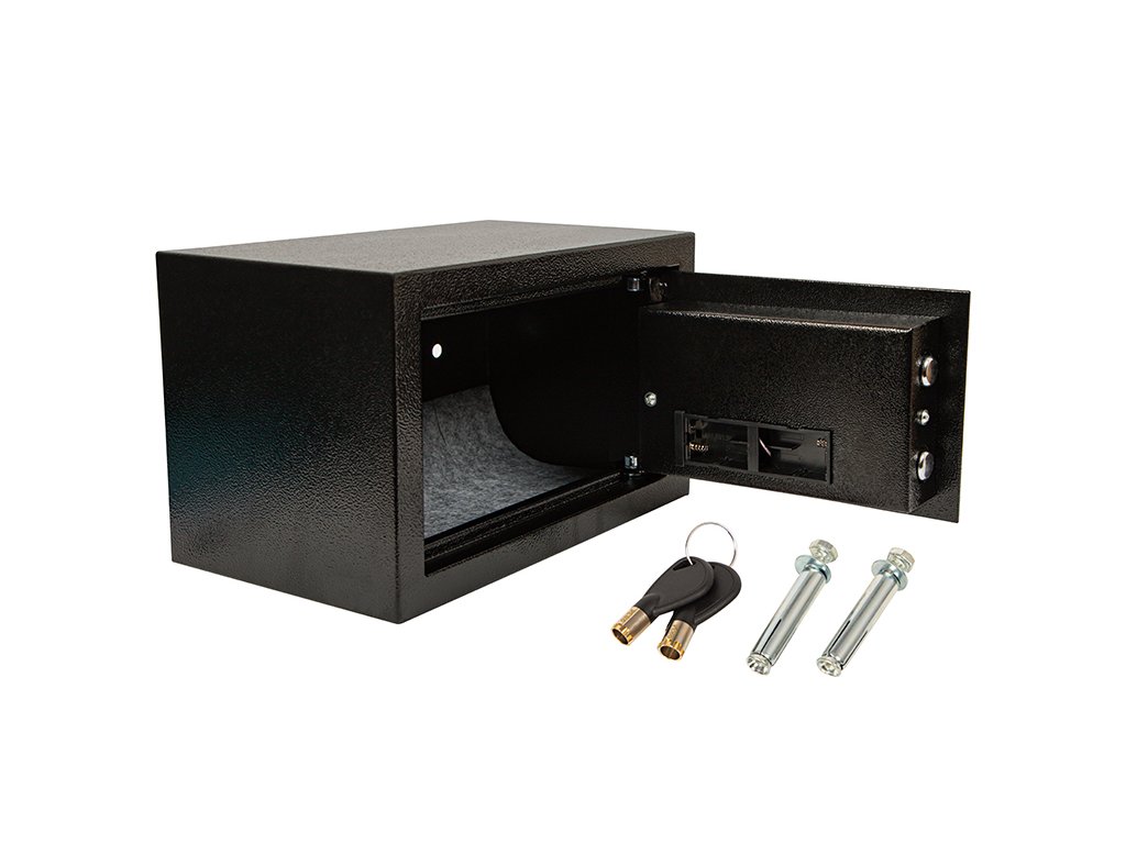 - Vzdržljiva konstrukcija: Ta sef je izdelan iz kakovostnih materialov, ki zagotavljajo mehansko odpornost in dolgo življenjsko dobo. Močno kovinsko ohišje je odporno na poskuse nasilnega vdora.