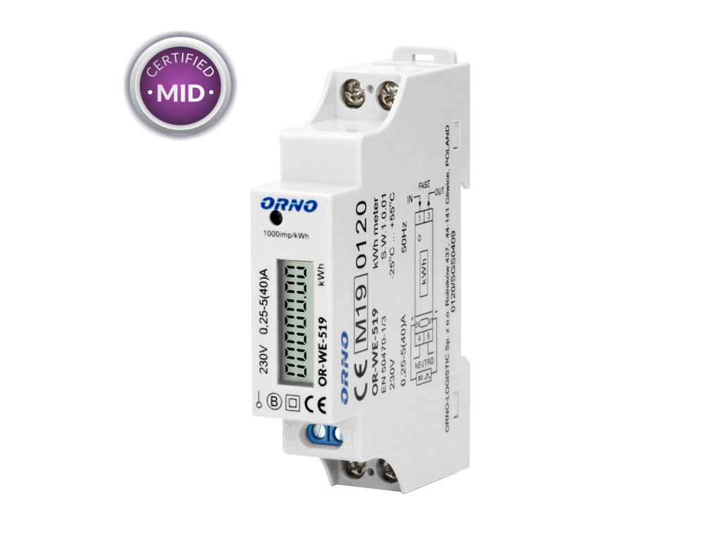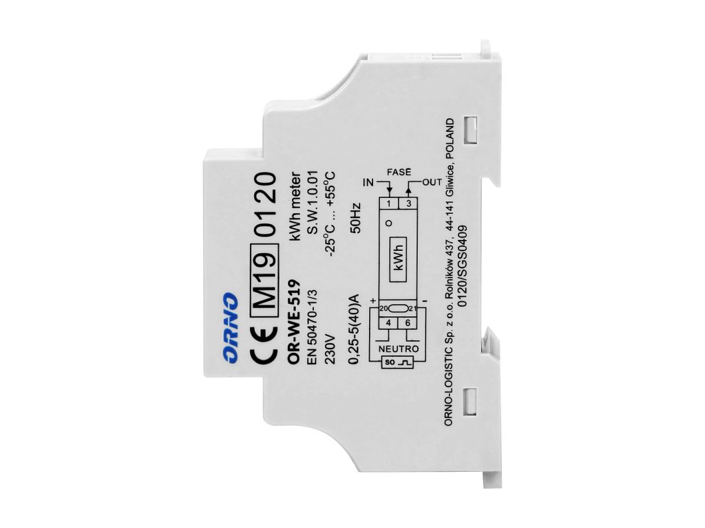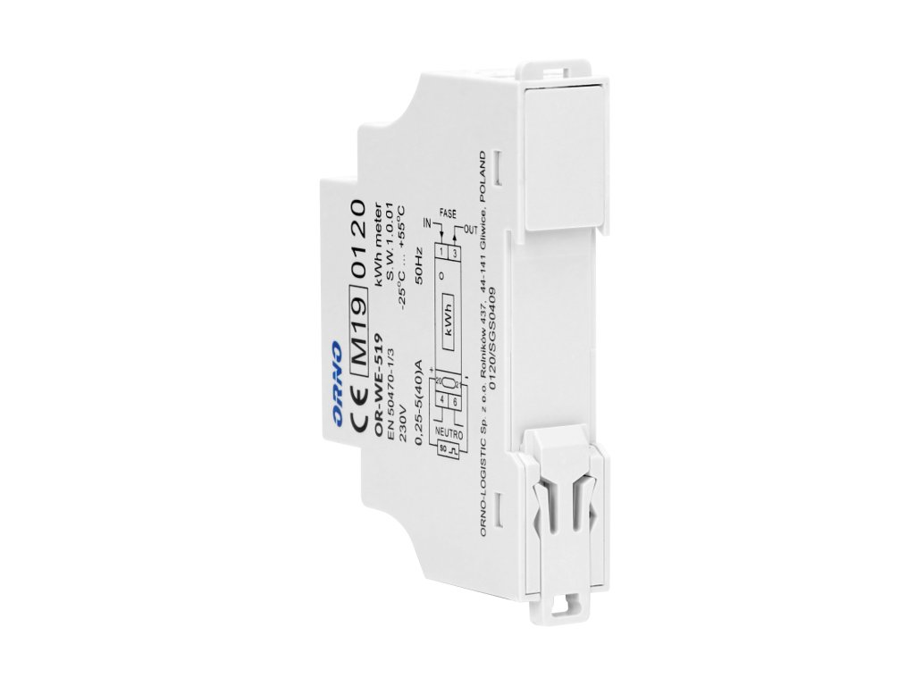 Enofazni merilnik električne energije, 40A, napajanje: 230V ~, 50Hz, osnovni tok: 5A, maks. tok: 40A, min. tok: 0,25A, frekvenca impulzov: 1000 imp / kWhAdditional parameters