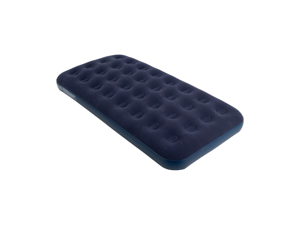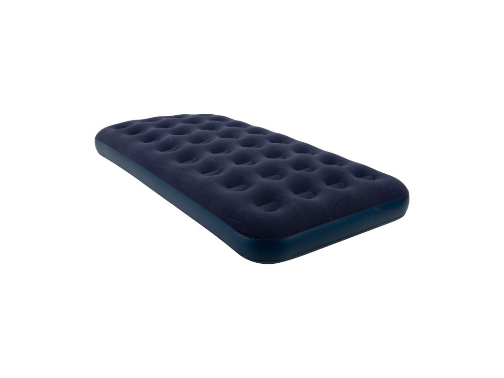 Izdelan iz trpežnega PVC-ja in prekrit z mehkim velurjem, je vzmetnica odporna na vlago in enostavna za čiščenje. Po izpustu zraka se zloži na ravno in tehta le 3,6 kg, kar jo naredi idealno za shranjevanje ali transport. Priložen je obliž za popravilo – za primer manjših poškodb.