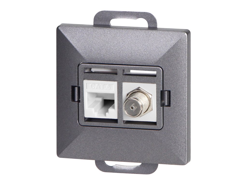 Enojna vtičnica tipa F + Enojna vtičnica tel-komp. RJ-45 Cat6 Pearl, TV/F+RJ45/P, antracit