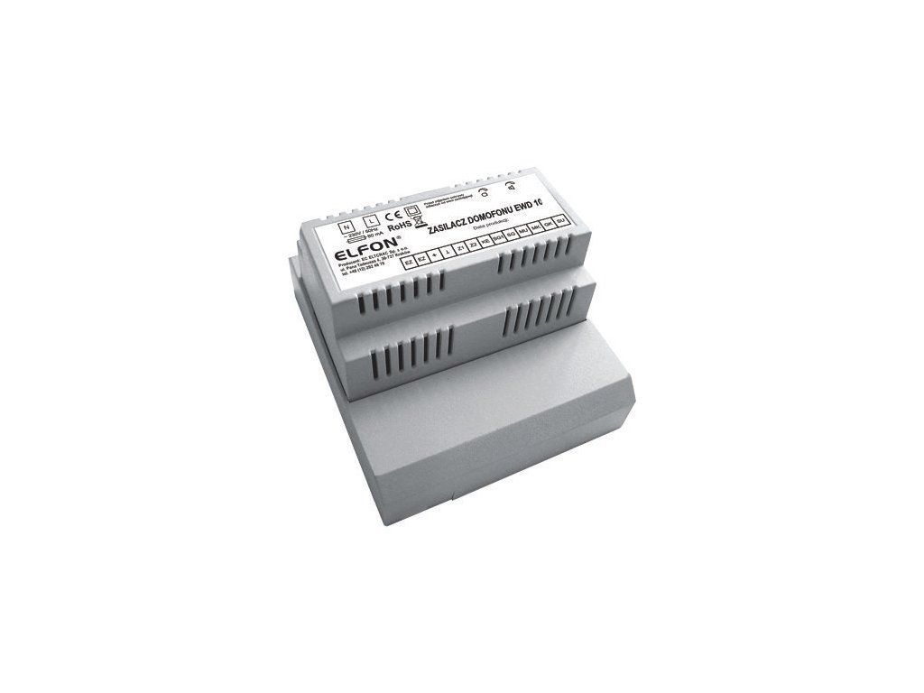 EWD-10 podjetja ELFON je napajanje namenjeno analognim sistemom domačega telefona. EWD-10 ima EURO ohišje z okvirjem, ki pokriva električne povezave, kar omogoča varno uporabo in udobno montažo na steno. Zaradi svoje konstrukcije lahko napajanje namestimo v električno omarico (fuzno omarico) - DIN tirnica 6 modulov.