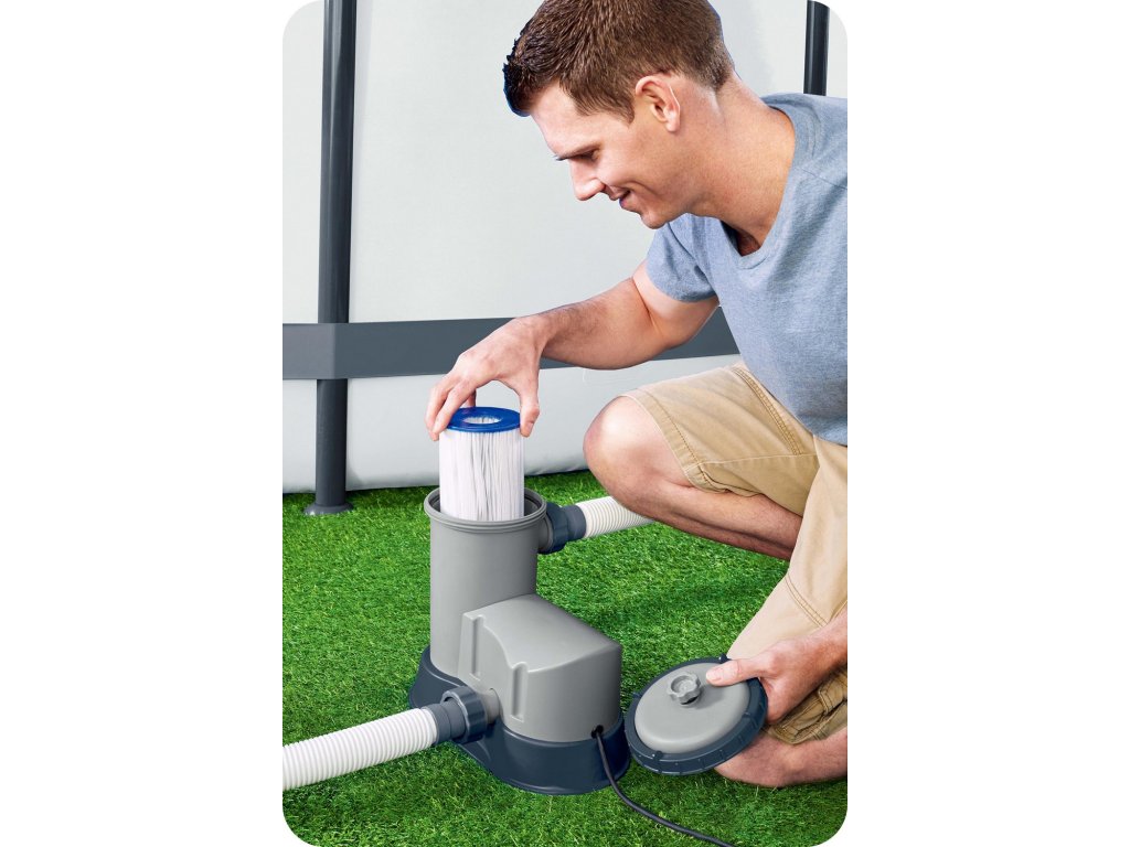 Je ne samo trpežna, ampak tudi enostavna za uporabo. Ne pozabite izbrati zmogljivosti, primerne za vaš rezervoar - predstavljeni model črpalke z zmogljivostjo 5678 litrov na uro je namenjen bazenom s premerom 244cm, 305cm, 330cm, 366cm in 457cm.