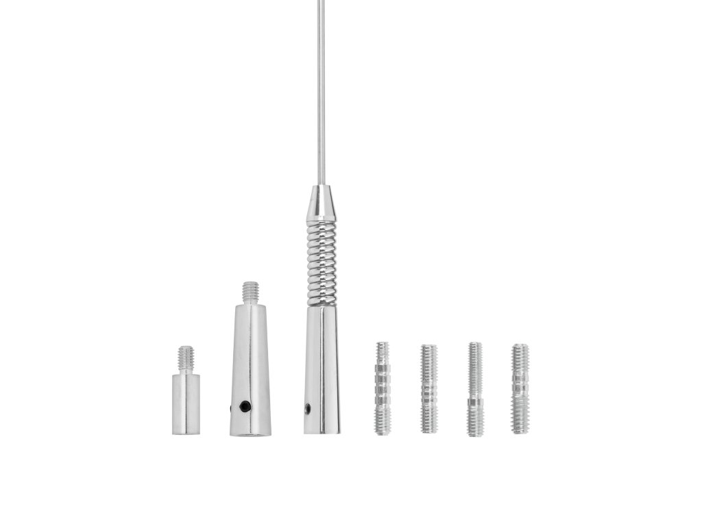 Antena M2 je opremljena s šestimi adapterji, kar povečuje njeno združljivost s široko paleto modelov avtomobilov. Adapterji z notranjim premerom 8 mm in 9 mm ter premeri navoja 4 mm, 5 mm in 6 mm omogočajo enostavno prilagoditev antene različnim montažnim sistemom, kar omogoča hitro in brez težav namestitev.