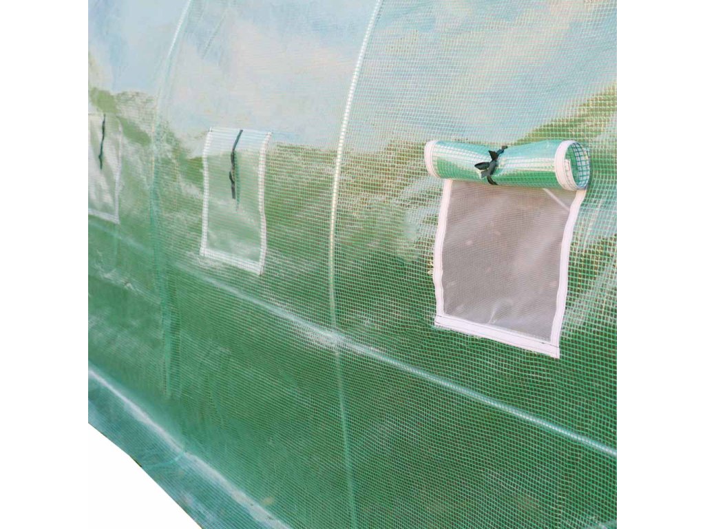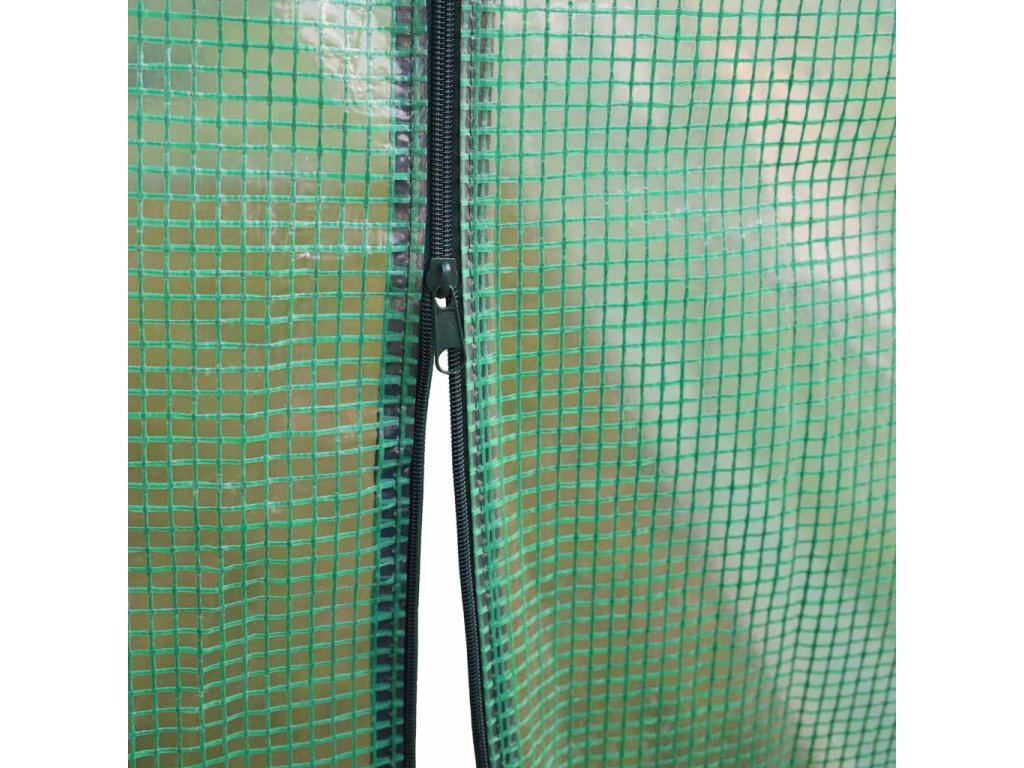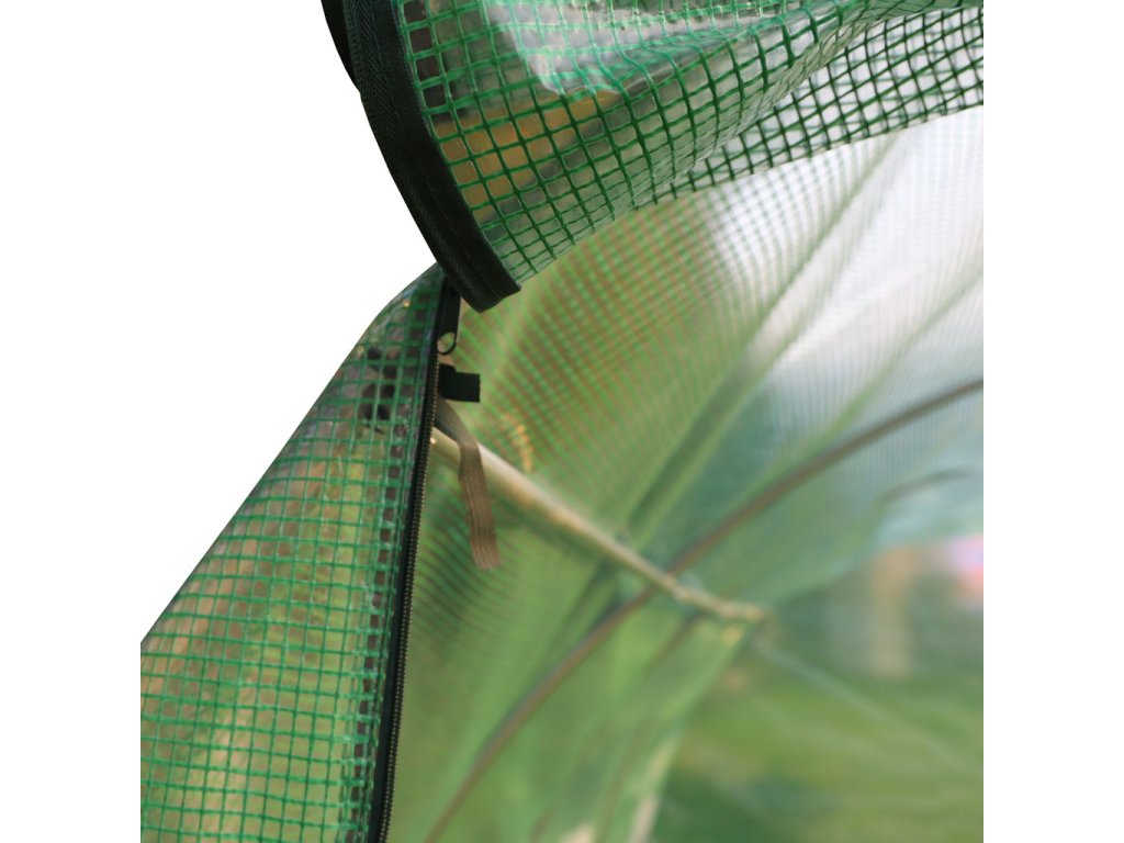 Osem zvijalnih oken s komarniki zagotavljajo zadostno kroženje zraka in hkrati ščitijo notranjost pred insekti. Prostoren vhod z zadrgo omogoča udoben dostop do pridelkov, kar olajša skrb zanje.