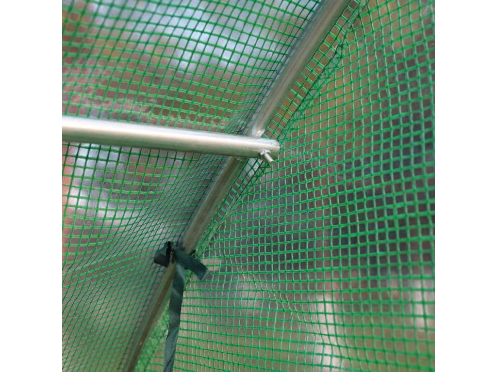 Tunel je izdelan iz močne PE folije s težo 130 g/m?, ojačane z mrežo, ki zagotavlja optimalne pogoje za gojenje in dolgo življenjsko dobo izdelka. Pocinkan jekleni okvir zagotavlja stabilnost in odpornost proti koroziji, zaradi česar bo tunel zdržal mnogo sezon.