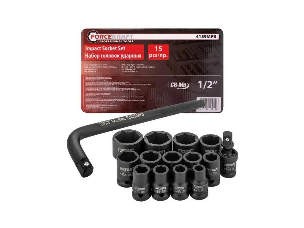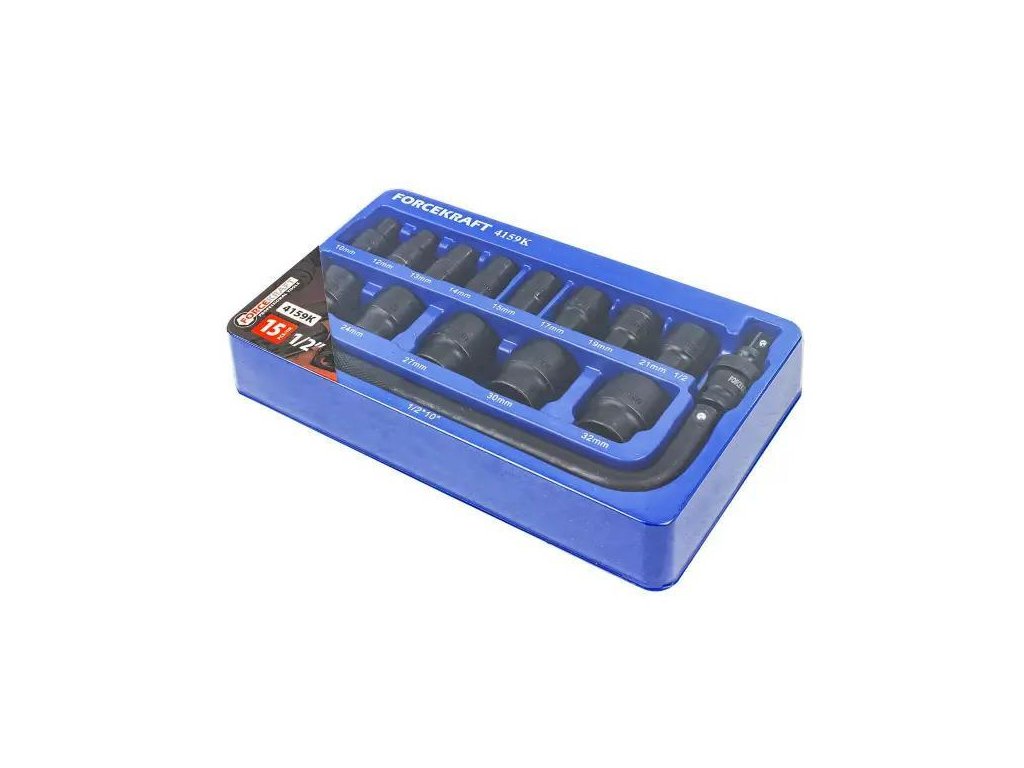 Komplet od FORCEKRAFT je odlična kombinacija kakovosti in funkcionalnosti, ki ne sme manjkati v profesionalni delavnici. Udarne glave so izdelane iz visokokakovostnega CR-MO jekla, odpornega na razpoke, zvijanje in ekstremne mehanske obremenitve. Zahvaljujoč natančnemu šestkotnemu profilu se popolno prilegajo glavam vijakov in matic, s čimer minimizirajo tveganje zdrsa in poškodbe.
