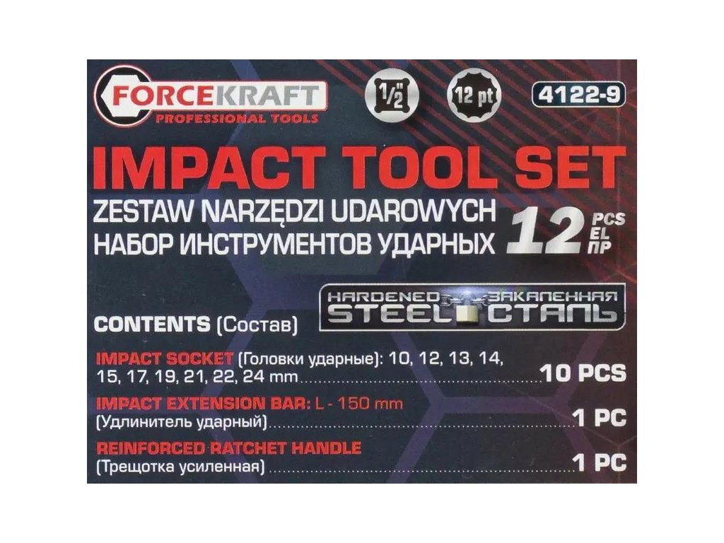 FORCEKRAFT Komplet UDARNIH nastavljivih KLJUČEV 12 kosov 1/2" + KOVČEK
