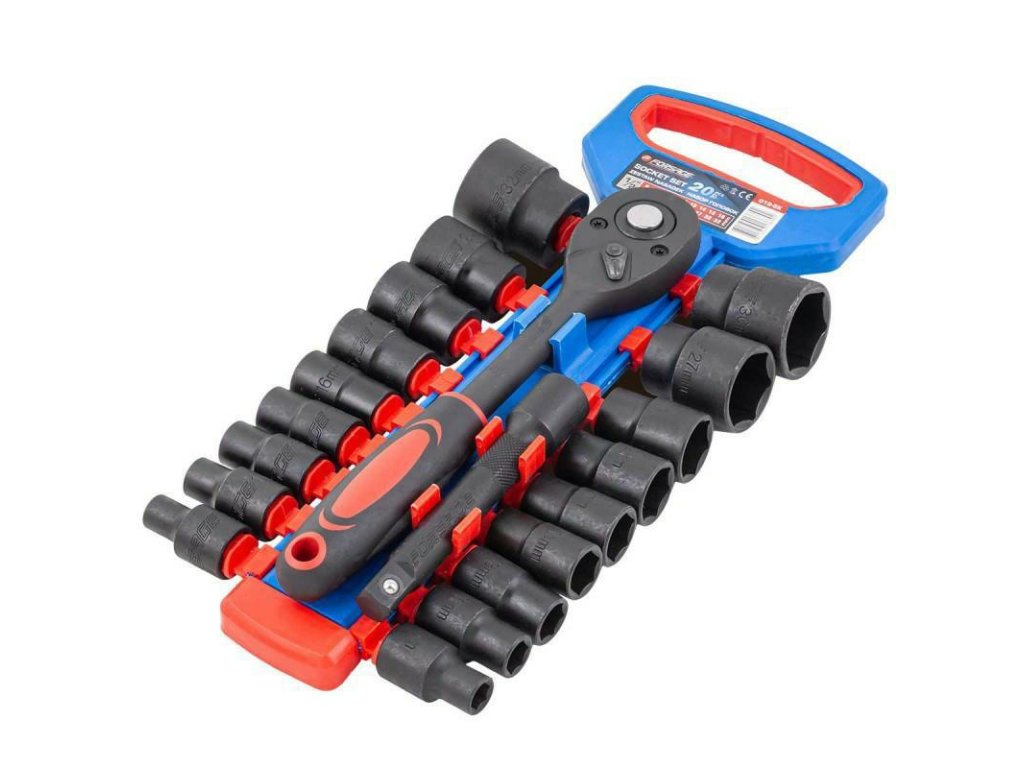 Kompleten set 20-delni je nepogrešljiva oprema vsake delavnice, avtoservisa ali domače garaže. Zaradi širokega izbora velikosti glav in robustne konstrukcije omogoča set udobno in varno delo v različnih mehanskih in avtomobilskih aplikacijah.