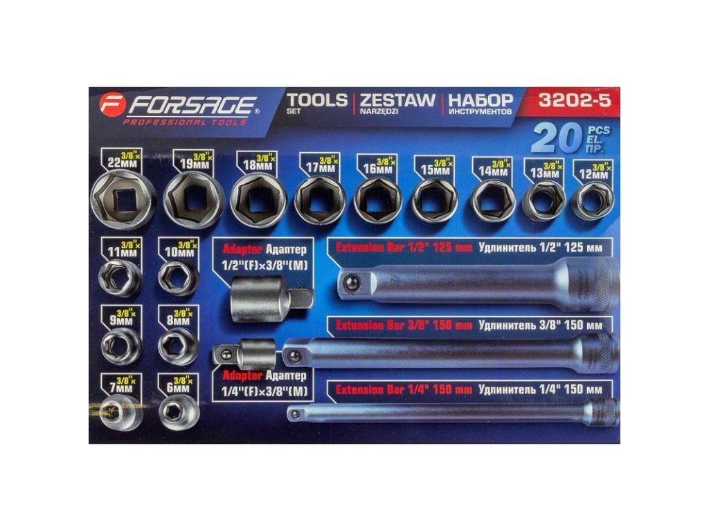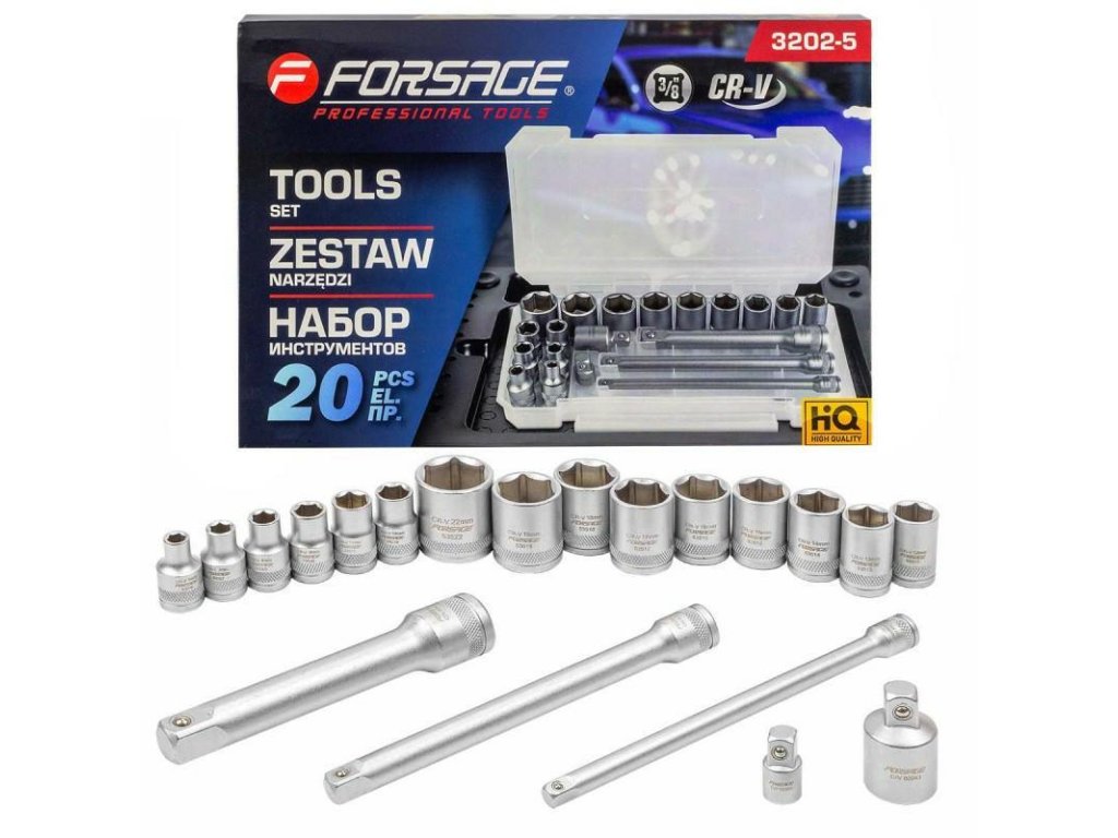 FORSAGE Set orodja z 20 glavniki, adapterji in podaljški