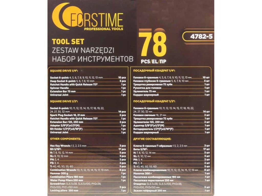 FORSTIME Komplet orodja VELIKIH 78 KOSOV 1/4" 1/2" 6-kotnih 4-32mm