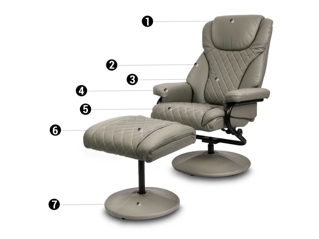Mehka opora za glavo, oblikovana hrbtna opora, udobni naslonjali za roke in pručnik, prilagojen stolu, poskrbijo, da se boste v fotelju počutili udobno in popolnoma sproščeno.