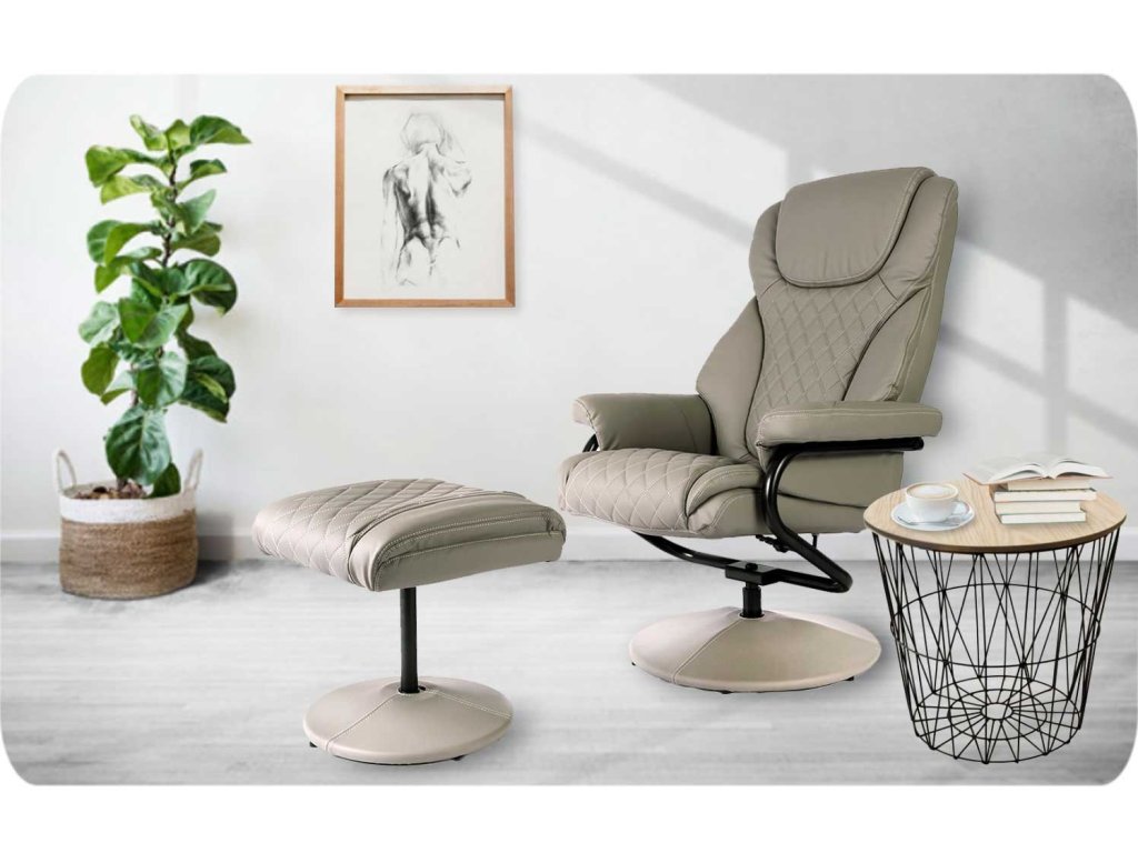 Elegantna fotelj s pručnikom za noge, ki vam omogoča sprostitev telesa tudi med delom. To je tudi idealen način za sprostitev po napornem in stresnem dnevu.