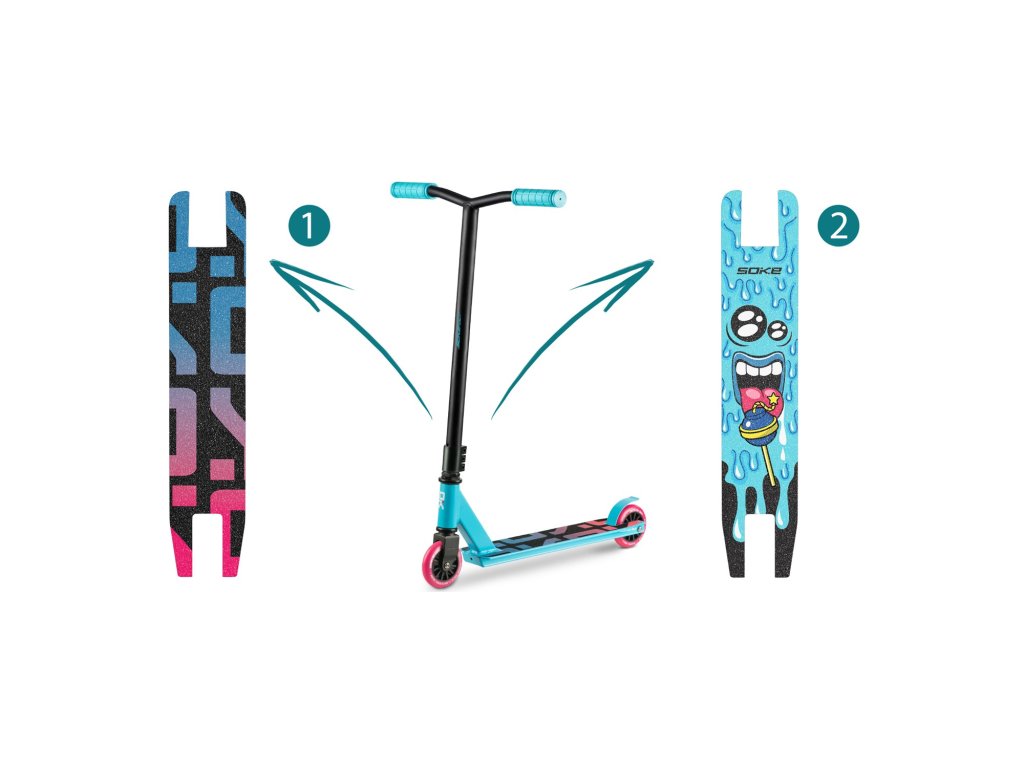 - Dodatna griptape (brušen papir), ki jo lahko nalepite na palubo vašega skiroja in spremenite njen videz!