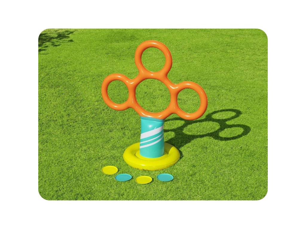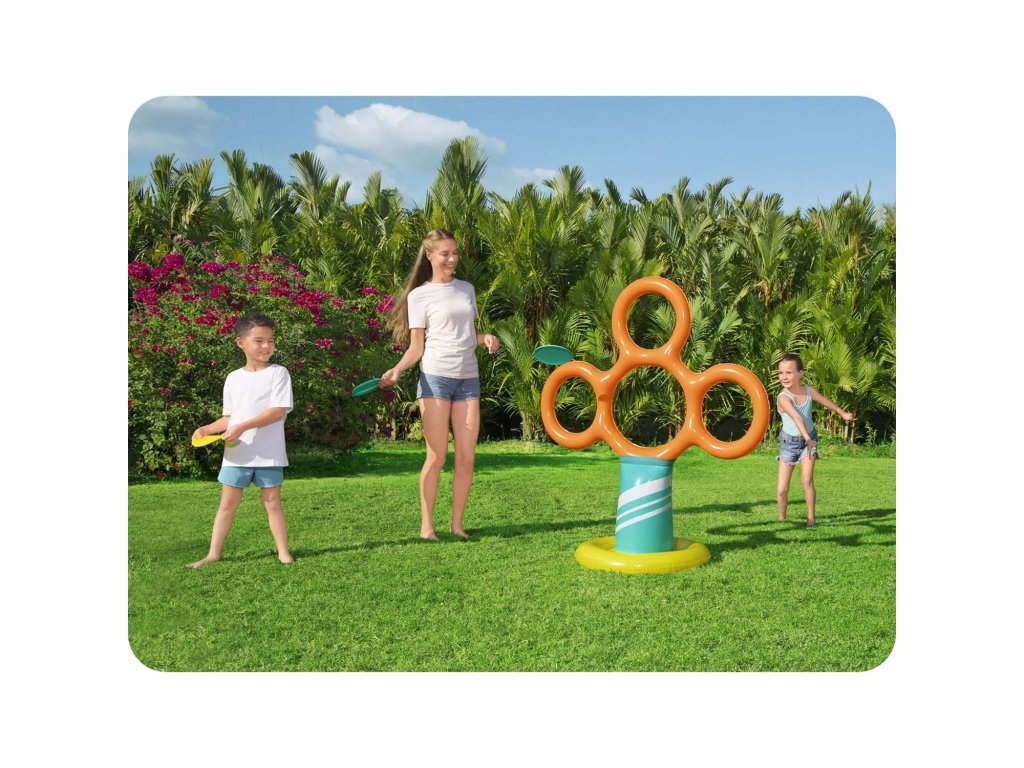 Stojalo s krogi in frizbija Bestway bo odlično popestrilo poletne aktivnosti na svežem zraku.