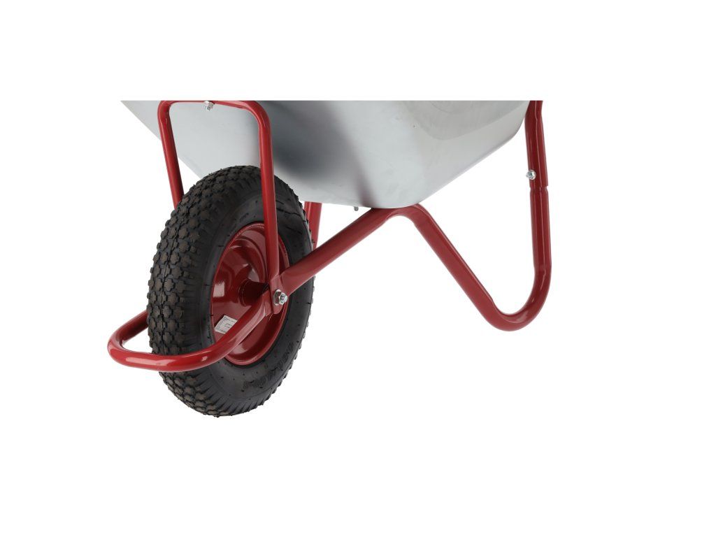 Odporn vozen za vrtove, izdelan iz visokokakovostnih materialov. Cinkovana posoda in trdno lakirano ogrodje zagotavljata trajnost in odpornost proti rji. Opremljen je z gumijastimi, protislipnimi ročaji in gumijastim kolesom s kovinskim obročem za varno in udobno delo.