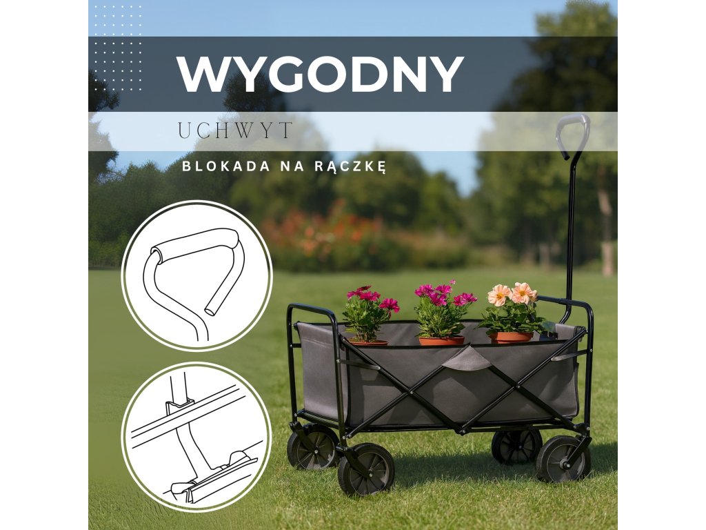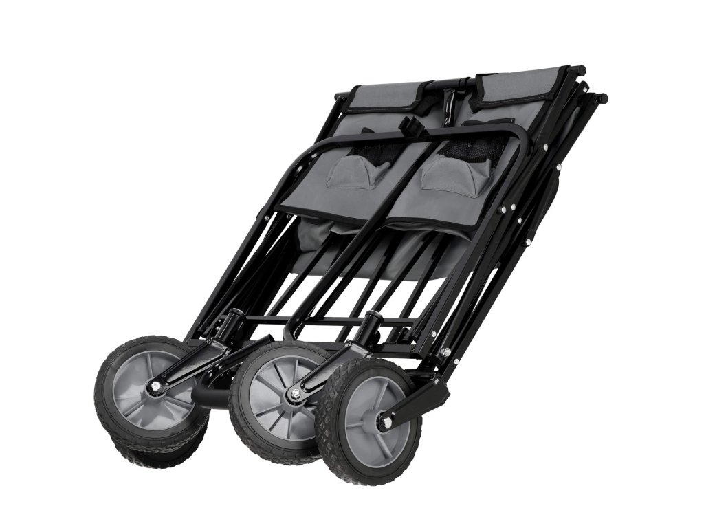 - Voziček zložljiv na majhne dimenzije (dovolj je potisniti zgornje ročaje navzgor)