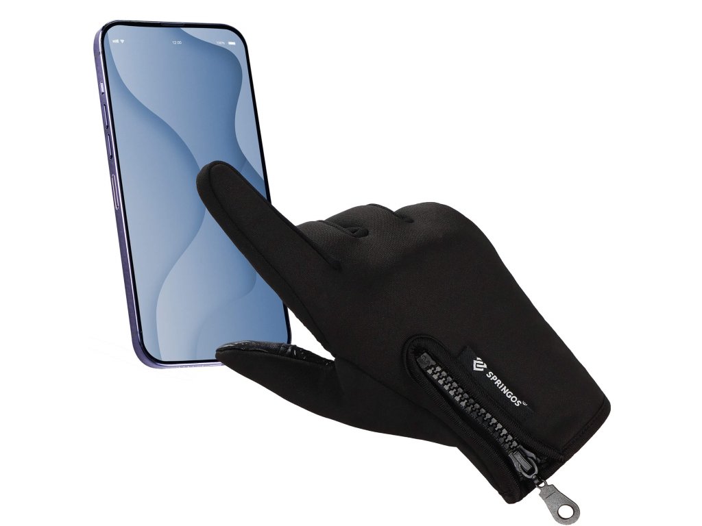 - Prednosti: protidrsna prevleka na notranji strani dlani, premaz na dveh prstih za dotik, zadrga za regulacijo odprtine za roko