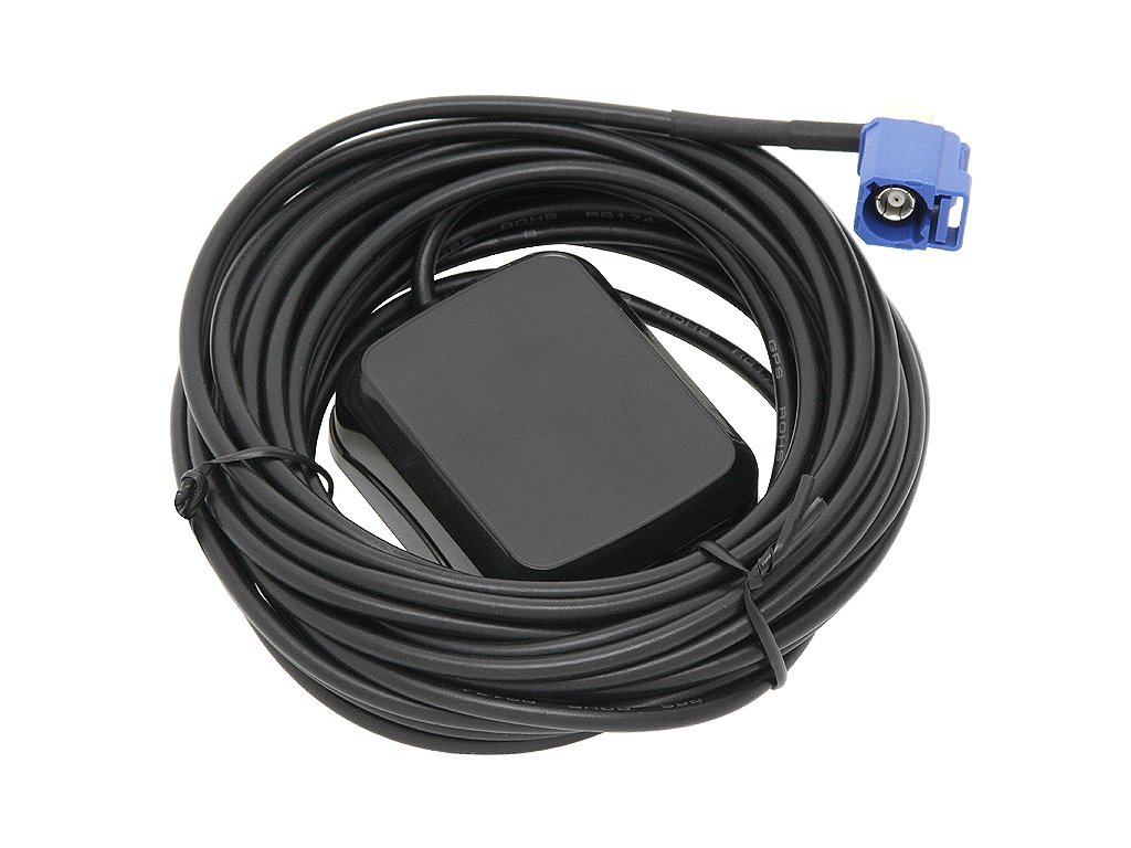 GPS antena z 90-stopinjskim kotnim priključkom FAKRA in 5 m dolgim kablom z možnostjo montaže znotraj (npr. na vetrobransko steklo) ali zunaj karoserije vozila z zelo močnim magnetom, nameščenim v ohišju. Umeščanje antene zunaj omogoča boljši sprejem signala, oddajanega s satelita.