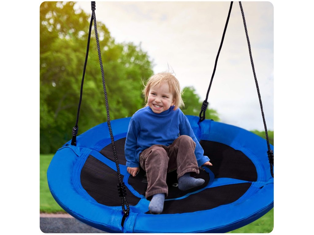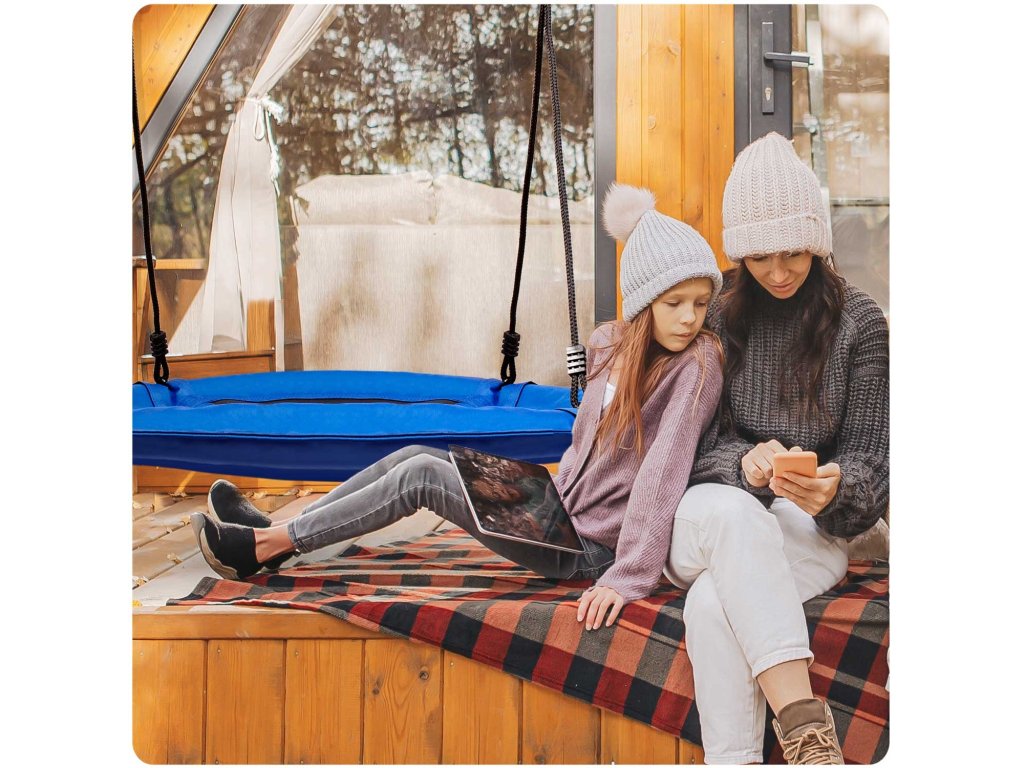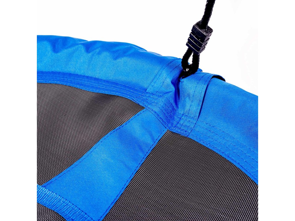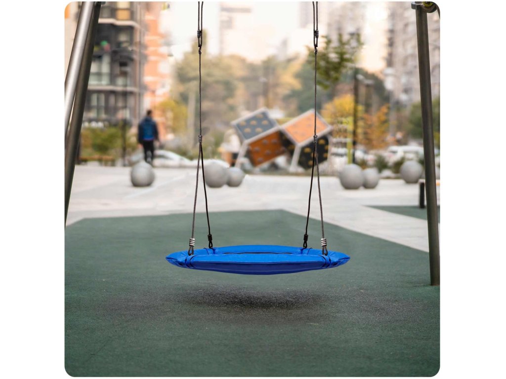 Gugalnica na jeklenem ogrodju obložena z mehko zaščitno peno, izdelana iz trpežnega materiala z večkratnimi šivi in na debelih visečih vrveh. Zagotavlja varnost, stabilnost in vzdržljivost.