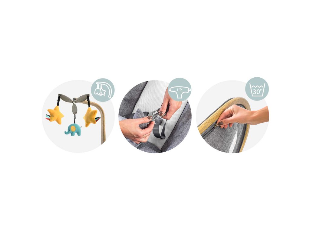 Odstranljiv prevleka, ki jo je mogoče prati, vam zagotavlja udobje pri vzdrževanju ležalnika v čisto in higienskih pogojih za vašega otroka.