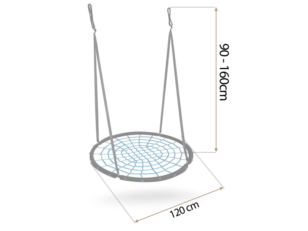 Gugalnik na jeklenem okvirju prekrit z zaščitnim pletenjem, iz močne vrvi s pletenjem pajkove mreže in debelimi visečimi vrvmi. Zagotavlja varnost, stabilnost in vzdržljivost.