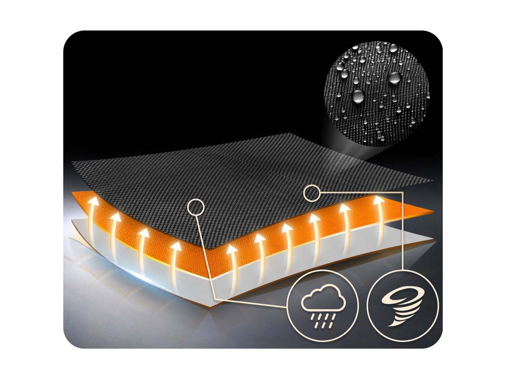 Poliester Oxford 600D, iz katerega je sedež izdelan, je vodoodporen in enostaven za čiščenje.