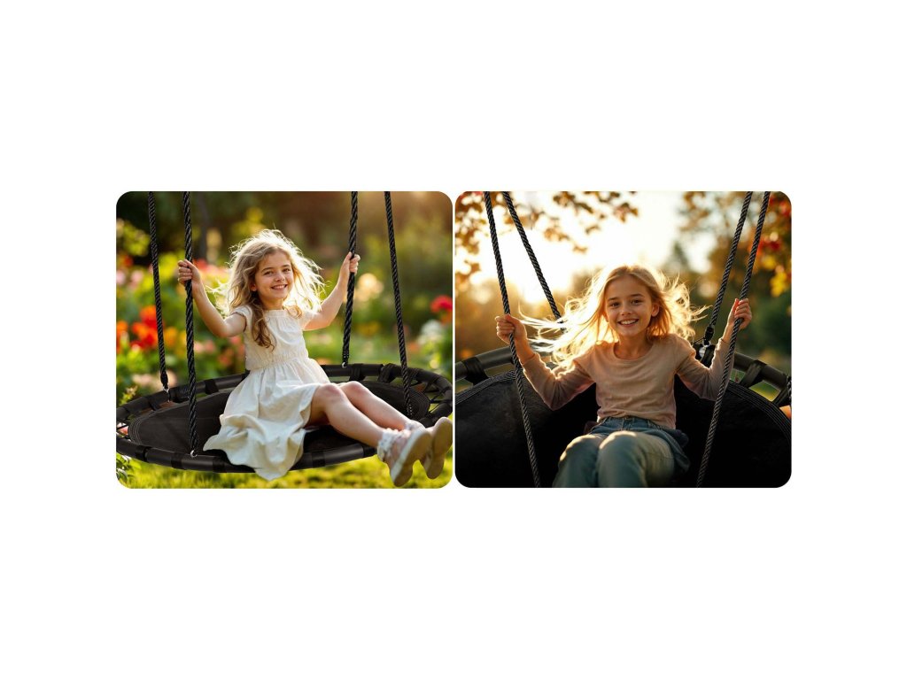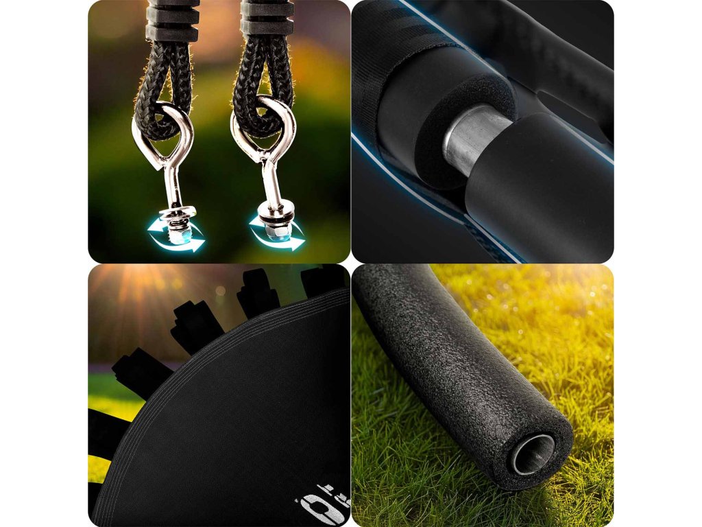 Gugalni na jeklenem okvirju pokritem z mehko zaščitno peno PE z večkratnim šivom in debelimi visečimi vrvmi. Zagotavlja varnost, stabilnost in vzdržljivost.