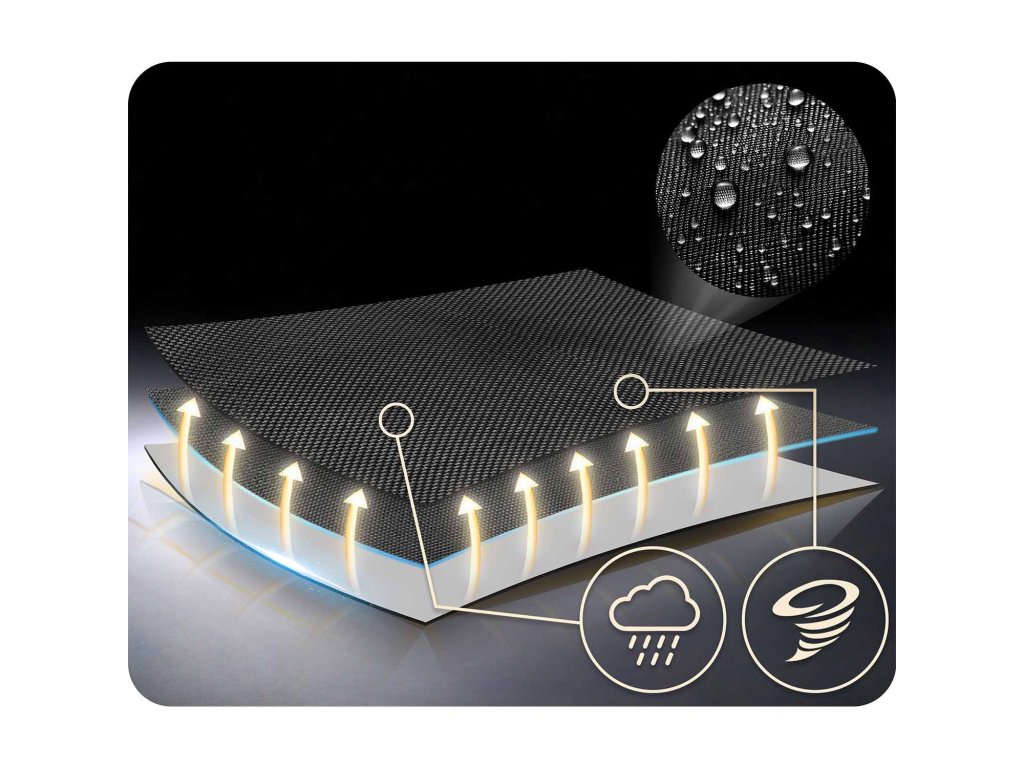 Poliester Oxford 600D, iz katerega je sedež narejen, je vodoodporen in enostaven za čiščenje.