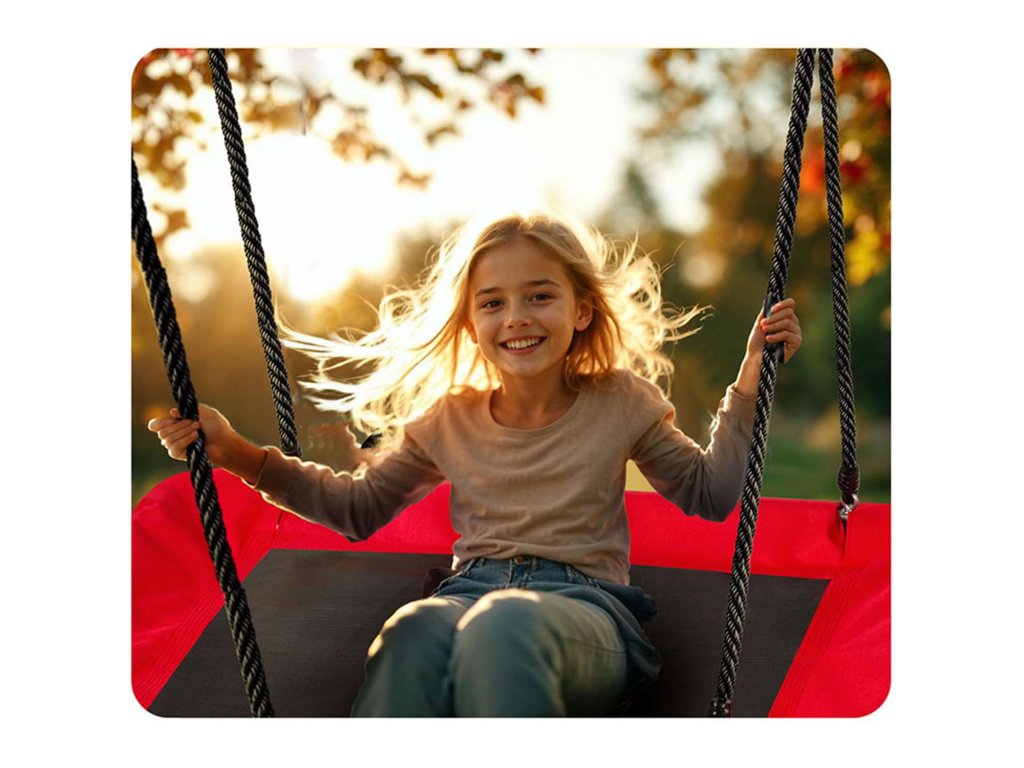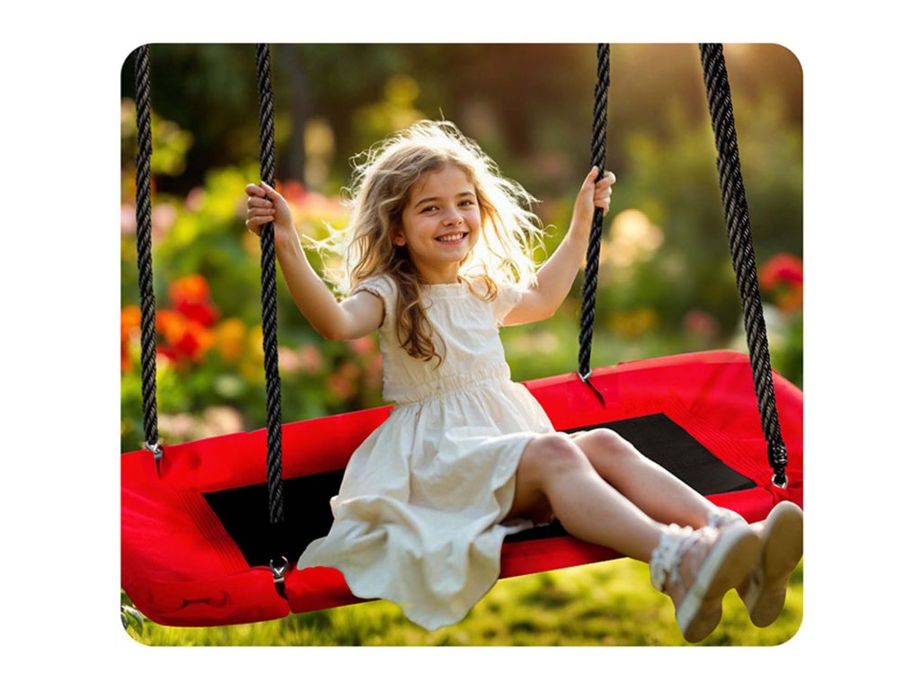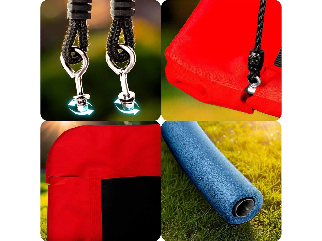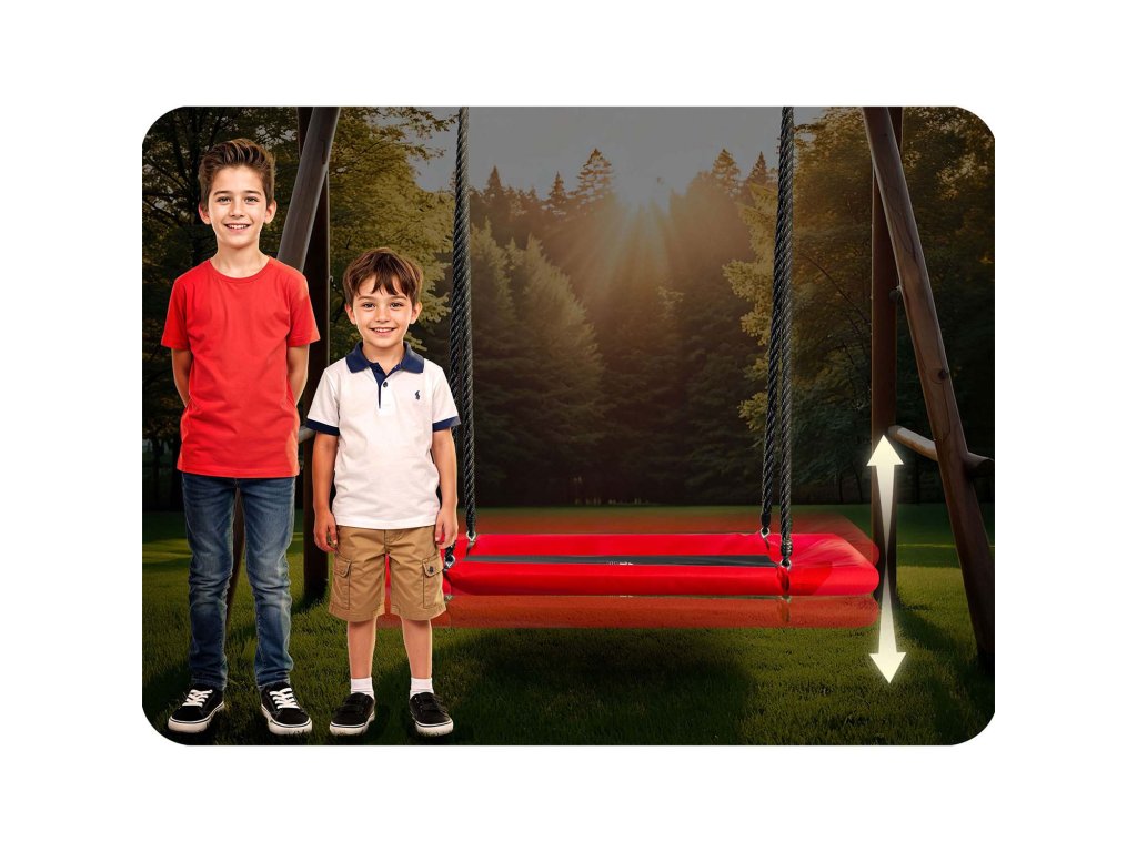 Gugalnica na jeklenem okvirju prekrita z mehko zaščitno peno PE z več prešitji in debelimi obesnimi vrvmi. Zagotavlja varnost, stabilnost in trajnost.