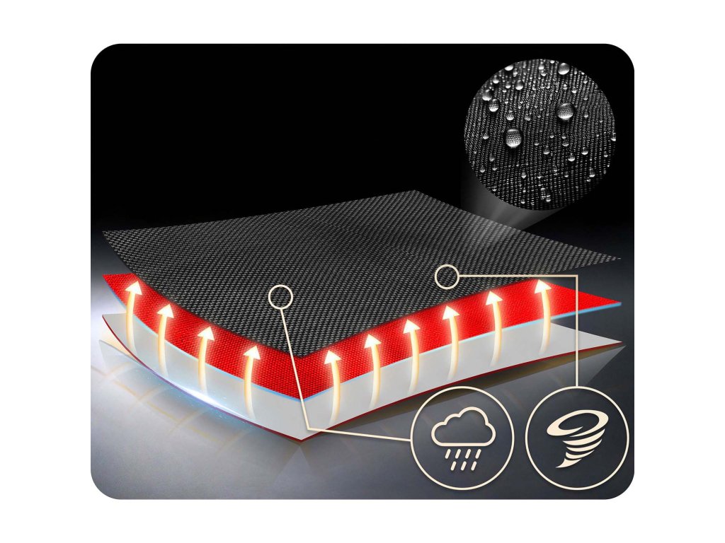 Poliester Oxford 600D, iz katerega je narejen sedež, je vodoodporen in enostaven za čiščenje.
