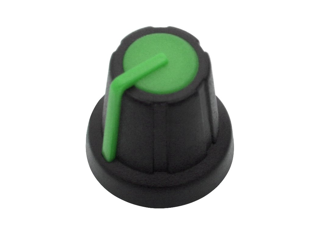 Gumb potenciometra črn N-2 z zelenim kazalcem 17,5 mm