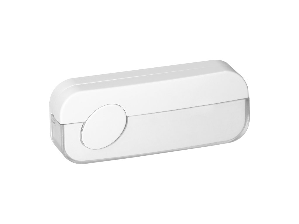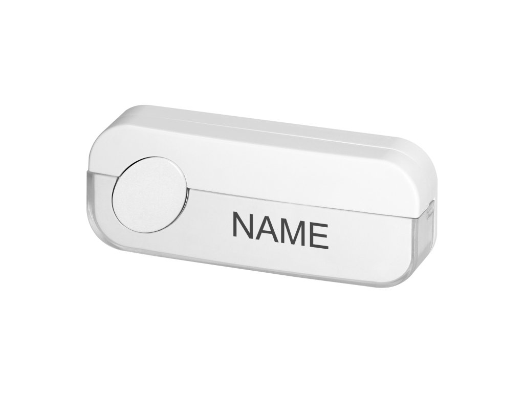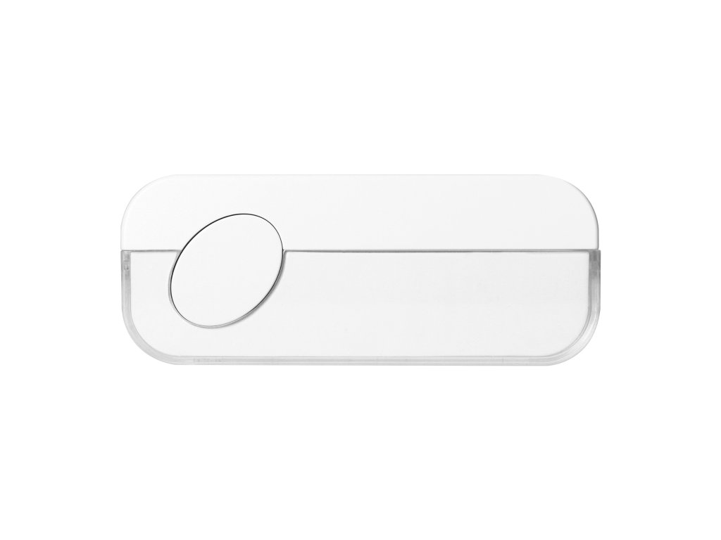 Površinsko nameščen gumb zvonca z mestom za kartico z imenom. Ohišje iz plastike. Namenjen za ožičeno namestitev zvonca. Stopnja zaščite IP44 zagotavlja varnost pred dežjem in zanesljivo delovanje v različnih vremenskih razmerah.Dimenzije 81x33x18mm. Bela barva.