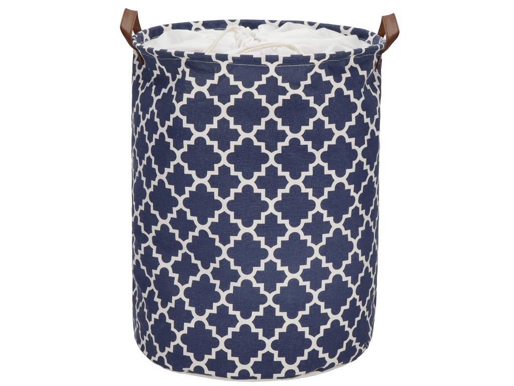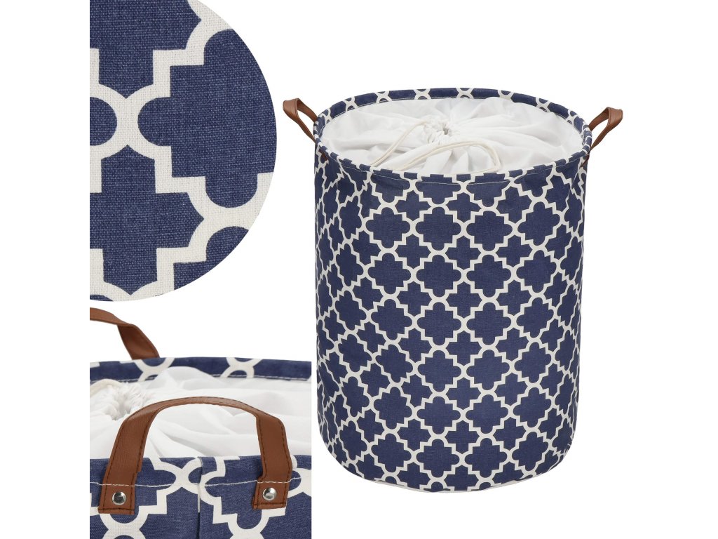 Na zgornjo osnovo prišit tekstilni ovratnik z zatezno vrvico - zapiranje košare po principu vrečke z zatezno vrvico, kar omogoča shranjevanje več vsebine (nad zgornjim robom)