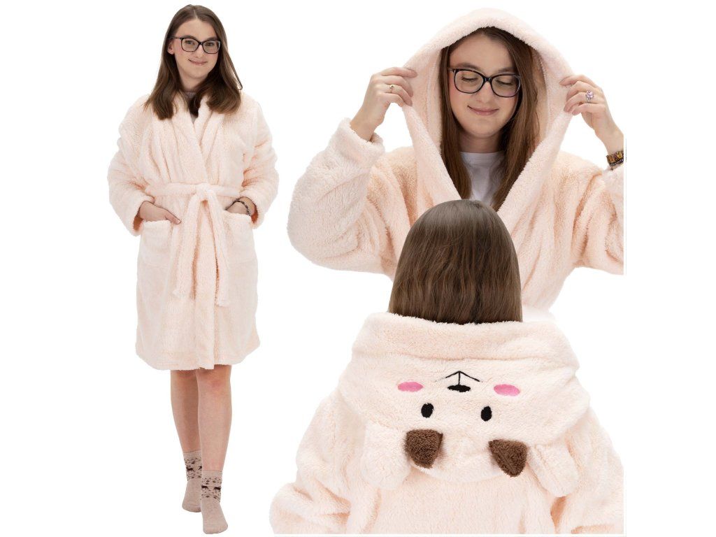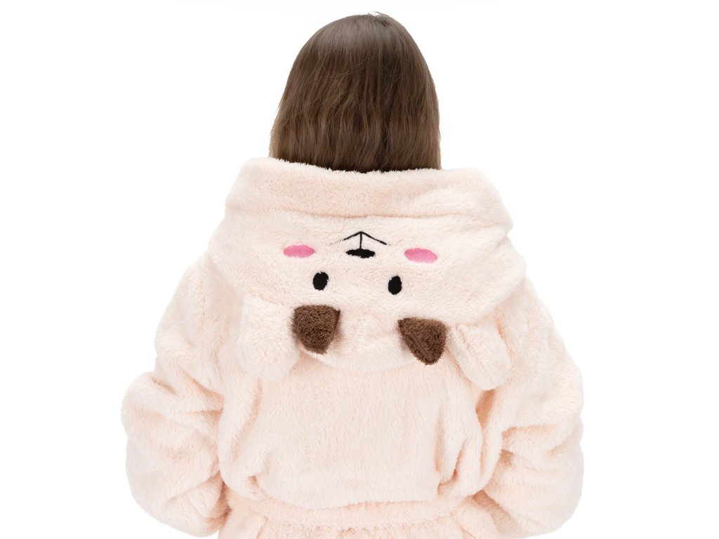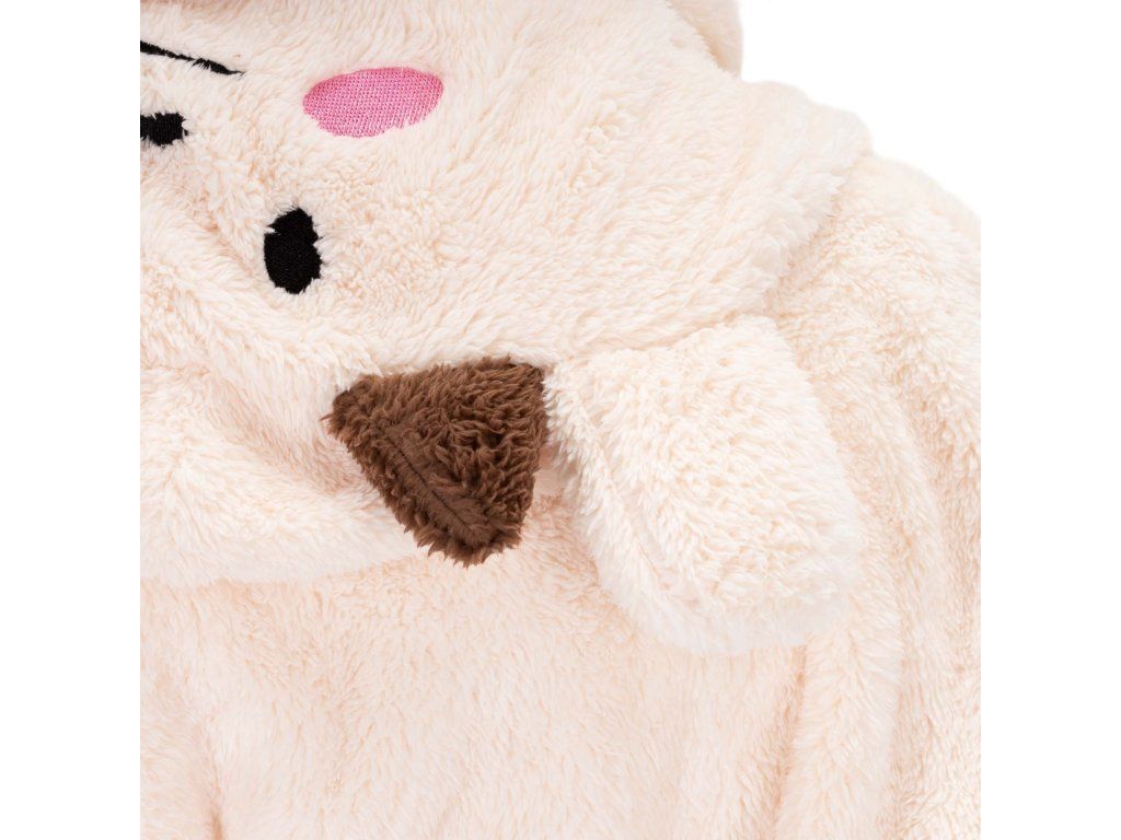 - Prednosti: 2 prostorna žepa, velika kapuca, pas za zavezovanje v pasu, zanka za obešanje, ušesa z obrazom na kapuci