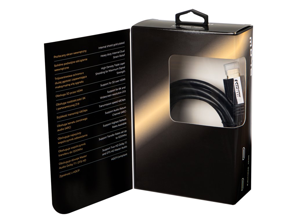 Kabel HDMI-HDMI v različici 2.1 je najnovejša različica HDMI tehnologije, ki podpira višje video ločljivosti in frekvenco osveževanja – med drugim tudi 8K, čeprav maksimalna ločljivost prenesenega slike znaša kar 10K! Izdelek je izdelan iz visokokakovostnih materialov z pozlačenimi elementi,zaradi česar je izjemno trpežen in močan.Poleg tega ima trojno zaščito, ki zagotavlja maksimalno moč signala.HDMI omogoča povezovanje vseh naprav, skladnih s standardom, audio/video, kot so DVD predvajalniki, Blu-ray, igralne konzole, računalniki, monitorji in digitalni televizorji. Video podatki se prenašajo s tehnologijo TMDS.Najpomembnejša značilnost HDMI vmesnika, razvit v letih 2000-2002, je, da omogoča povezavo med posameznimi audio/video napravami z enim kablom, pri tem pa ohranja najvišjo kakovost prenesenega zvoka in slike ter popolno funkcionalnost uporabljenih naprav, kar hkrati močno olajša kabliranje domačega audio/video sistema. To je veliko poenostavitev v primerjavi s prej uporabljenimi povezavami, ki so zahtevale širok nabor različnih kablov. Tehnologija se odlikuje po visoki kakovosti slike in zvoka ter možnosti prenosa slike v zelo visoki ločljivosti.Najpomembnejše značilnosti HDMI v različici 2.1:- Podpira višje ločljivosti, vključno z 8K in celo 10K! - Omogoča prenos podatkov do 48Gb/s - Podpira funkcijo eARC za še boljši zvok - Podpira dinamični HDR, ki zagotavlja izredno visoko kakovost slike - Podpora za VRR, kar pomeni spremenljivo frekvenco osveževanja slike, kar omogoča hitrejše prenašanje slikovnih okvirjev na televizor - Visokokakovostni materiali s pozlačenimi elementi - Trojna zaščita, ki zagotavlja maksimalno moč signala Specifikacija:- Dolžina kabla: 3m - Priključki: HDMI - Različica: 2.1