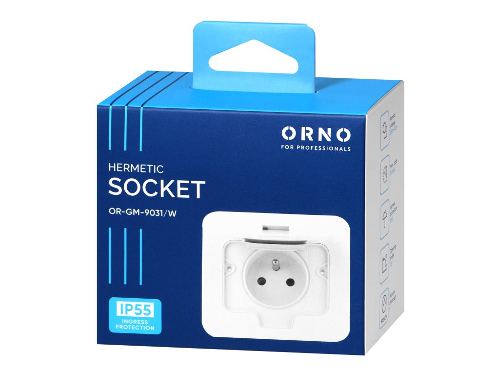 Pravokotni hermetični dvojni vtič, zasnovan za vgradnjo, je popolna rešitev za tako domače kot komercialne prostore. Dobro deluje na mestih, kjer je potrebna visoka odpornost na zunanje dejavnike.Ima vtič francoskega tipa, ki omogoča priklop naprave z največjo obremenitvijo do 3680W. Vtič deluje pri 230V, 50Hz; zato je primeren za večino standardnih električnih instalacij.