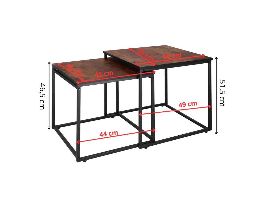 - Skupna višina večje mize: 51,5 cm