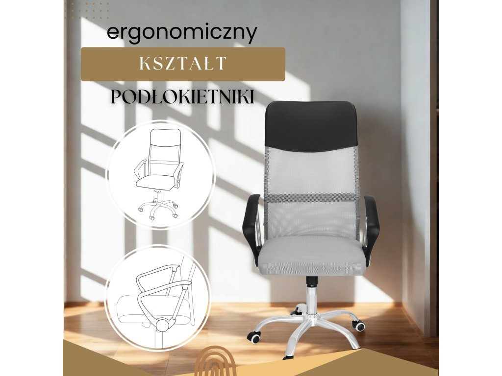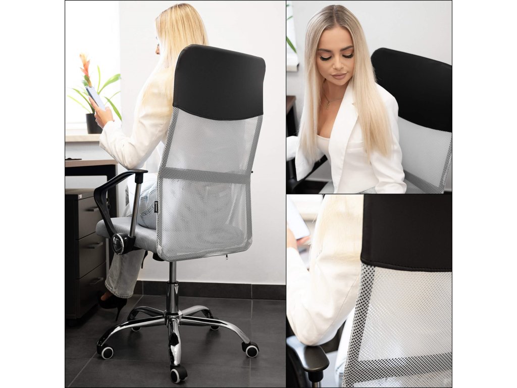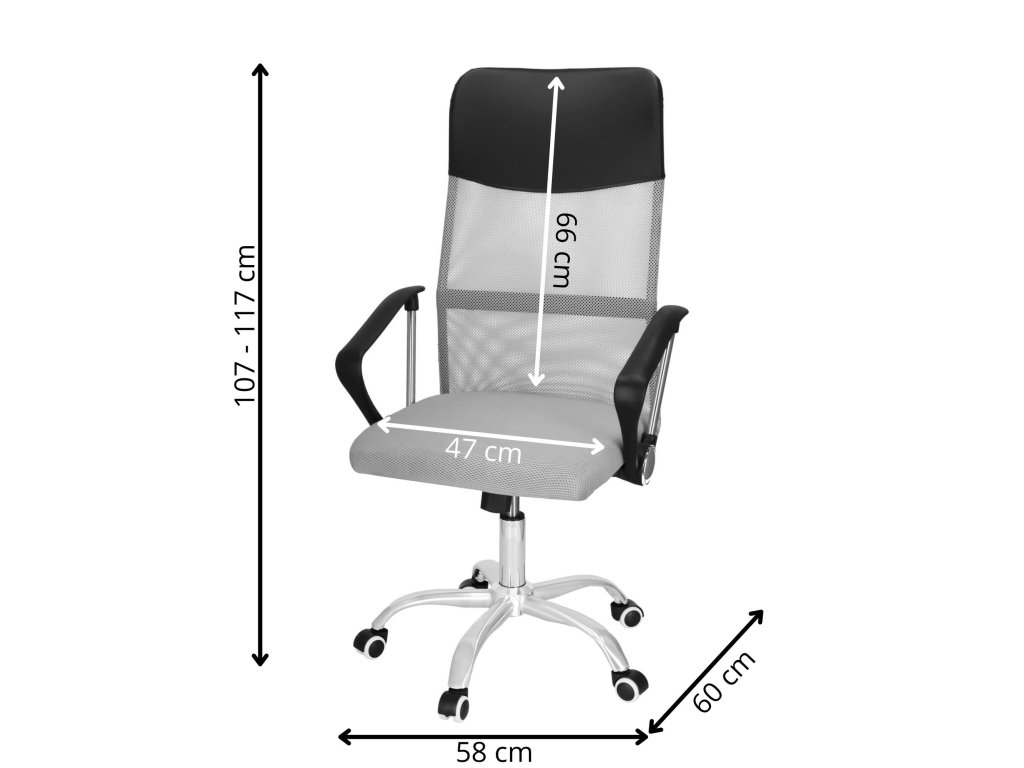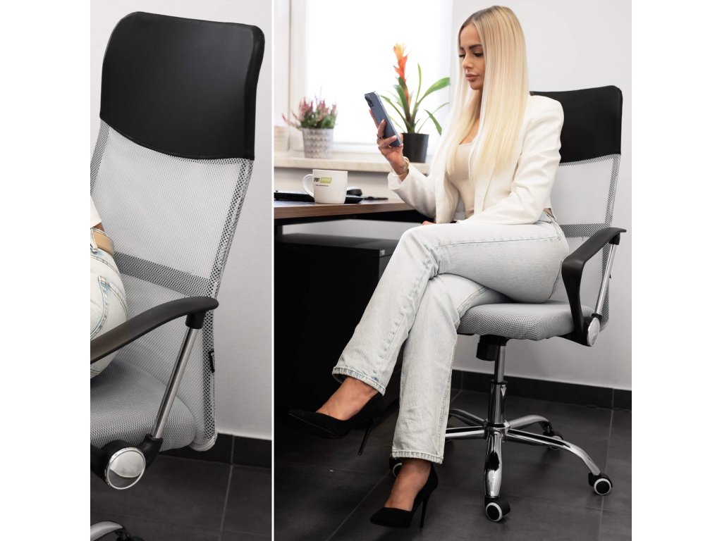 - Sedež in tkanina naslonjala v svetlo sivi barvi, eko usnje v zgornjem delu naslonjala in naslonjala za roke v črni barvi