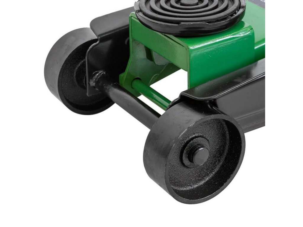 Zahvaljujoč primerno zasnovanim kolesom lahko to dvigalo enostavno postavite na katerikoli točki pod avtom. Njihova konstrukcija močno olajša manevriranje s tem orodjem. Njihov velik premer omogoča, da enostavno upravljate dvigalo tudi na grobih površinah.