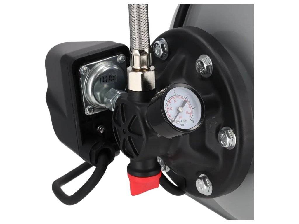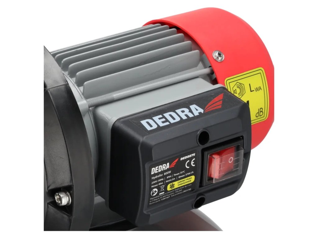 Črpalka ne deluje tako pogosto. Hydrofor DEDRA DED8875 je napajan z 800 W črpalko na 230 V, tj. iz omrežne vtičnice. Hydrofoil ima integrirano vodno črpalko z zmogljivostjo 3.700 litrov na uro, ki zagotavlja konstanten in enakomeren tlak vode. Telo hydr oora je jeklena posoda s kapaciteto 19 litrov. Tlačno stikalo je odgovorno za vzdrževanje tlaka vode v sistemu (1,5-3 bare) in po potrebi aktivira vodno črpalko. Tlak s se spremlja z vgrajenim manometrom. Hydrofor z vodno črpalko je napajan z 1,2 m dolgim kablom. Noge tvorijo osnovo hydrofora z luknjami, ki omogočajo trajno pritrditev na površino.