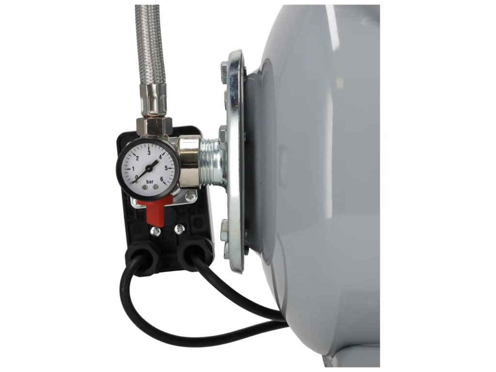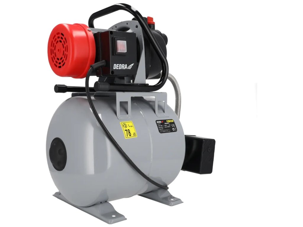 To je velik prispevek k okolju. Hydrofor DEDRA DED8877 je napajan s črpalko z močjo 1200 W in napetostjo 230 V, torej iz standardne vtičnice. Hydrofor je opremljen z integrirano vodno črpalko z zmogljivostjo 3 800 litrov na uro, ki zagotavlja stalen in enakomeren pretok vode. Ohišje hydroforja tvori jeklen rezervoar s prostornino 19 litrov. Tlačno stikalo je odgovorno za vzdrževanje tlaka vode v sistemu (1,5-3 bar) s tem, da po potrebi aktivira vodno črpalko. Tlak je mogoče spremljati s pomočjo vgrajenega manometra. Hydrofor je povezan z vodno črpalko s pomočjo 1,2 m kabla. Noge na osnovi hydrofora z luknjami za fiksno montažo na površino.
