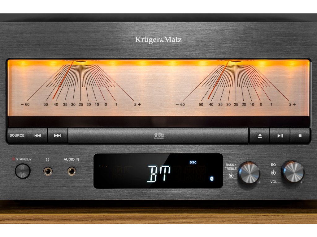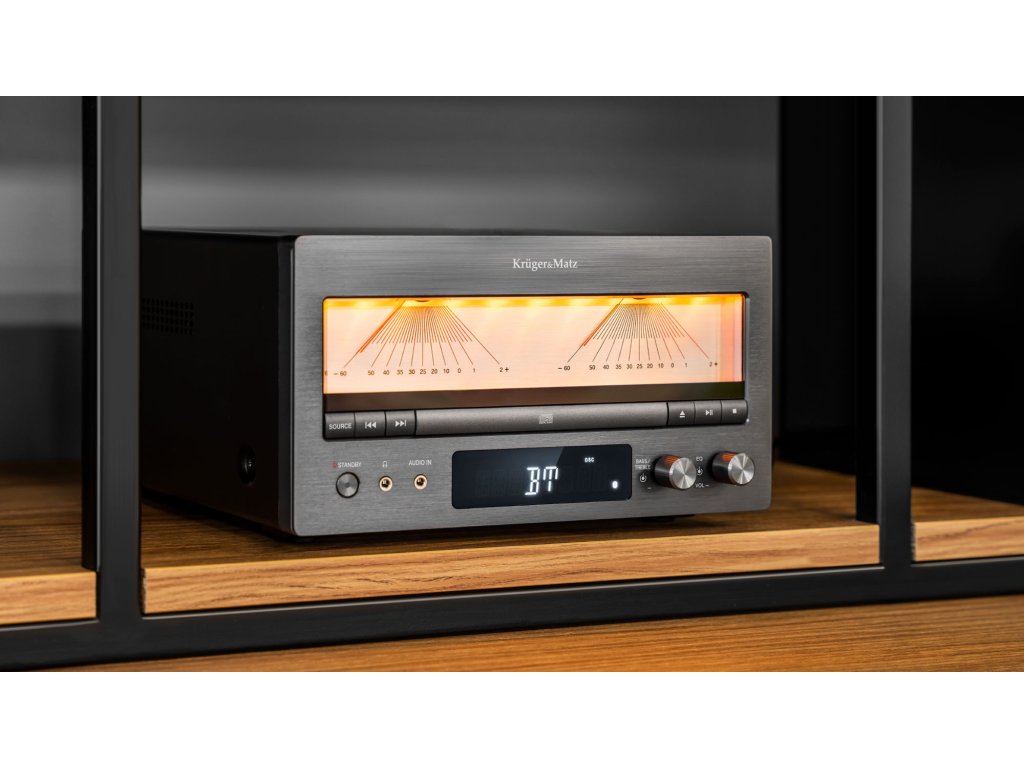 KM1995-A navdušuje ne le z visoko kakovostjo zvoka, ampak tudi z eleganco. Črna, sijajna, jeklena konstrukcija in fronta iz brušenega jekla zagotavljata brezhibno estetiko v vsakem prostoru. Unikaten retro značaj daje tudi analogni merilnik nivoja zvoka, nameščen na fronti.