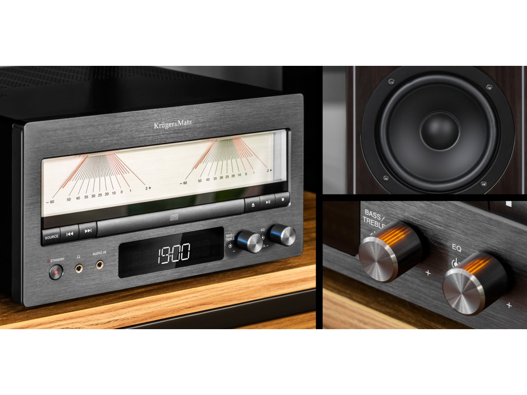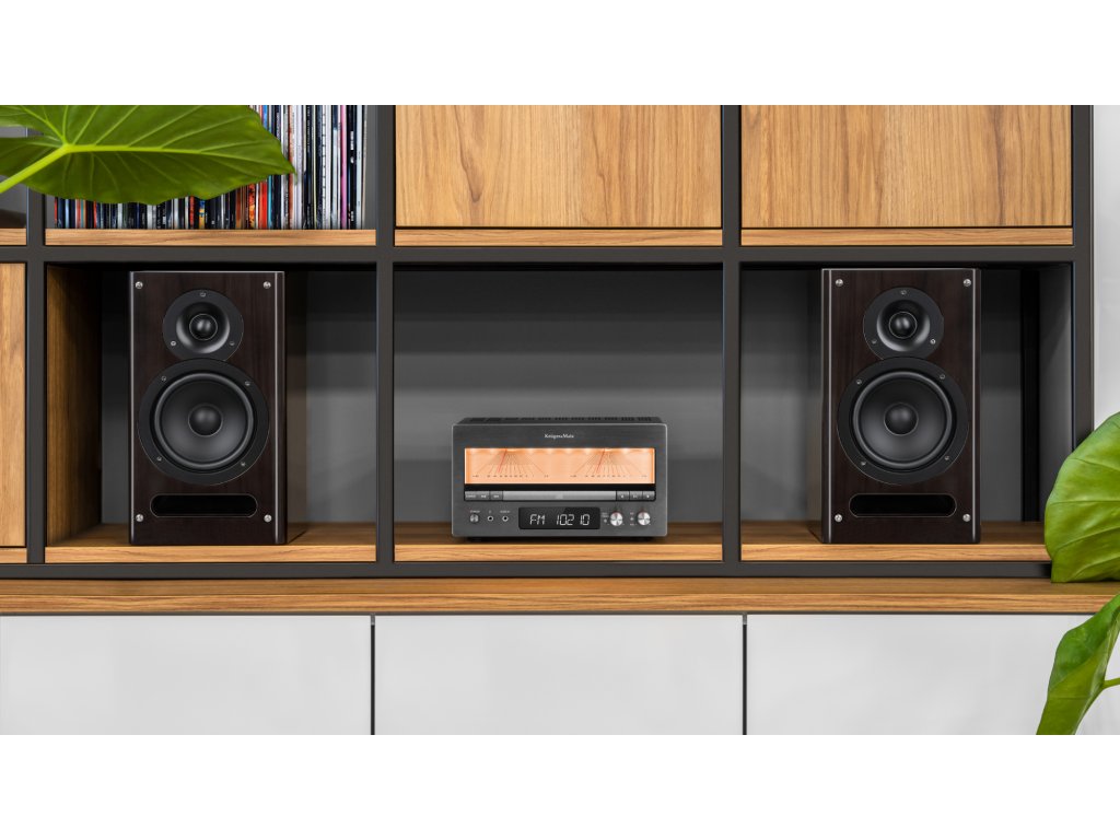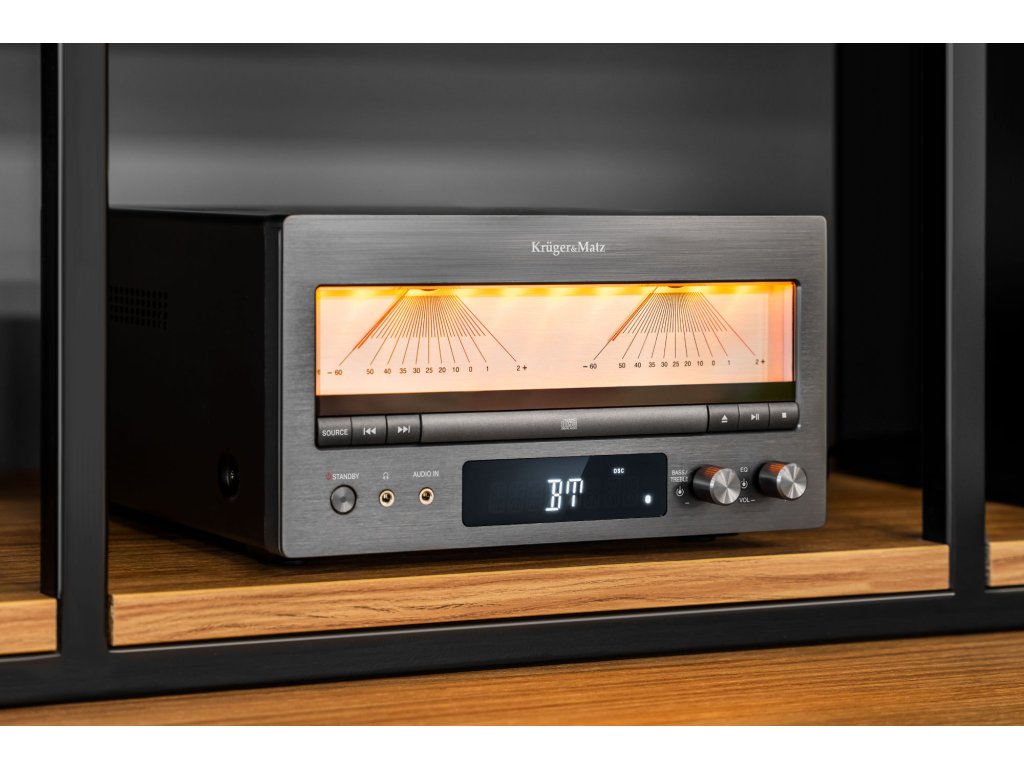 KM1995 ne navdušuje le z visoko kakovostjo zvoka, ampak tudi s svojo eleganco, ki zagotavlja popolno estetiko v vsakem interierju. Enojavni retro pridih daje tudi analogni merilnik nivoja zvoka na sprednji strani.