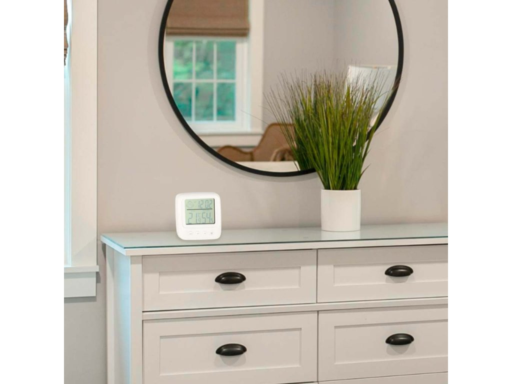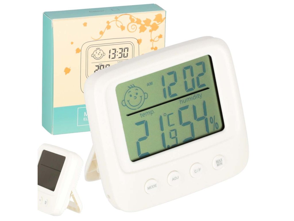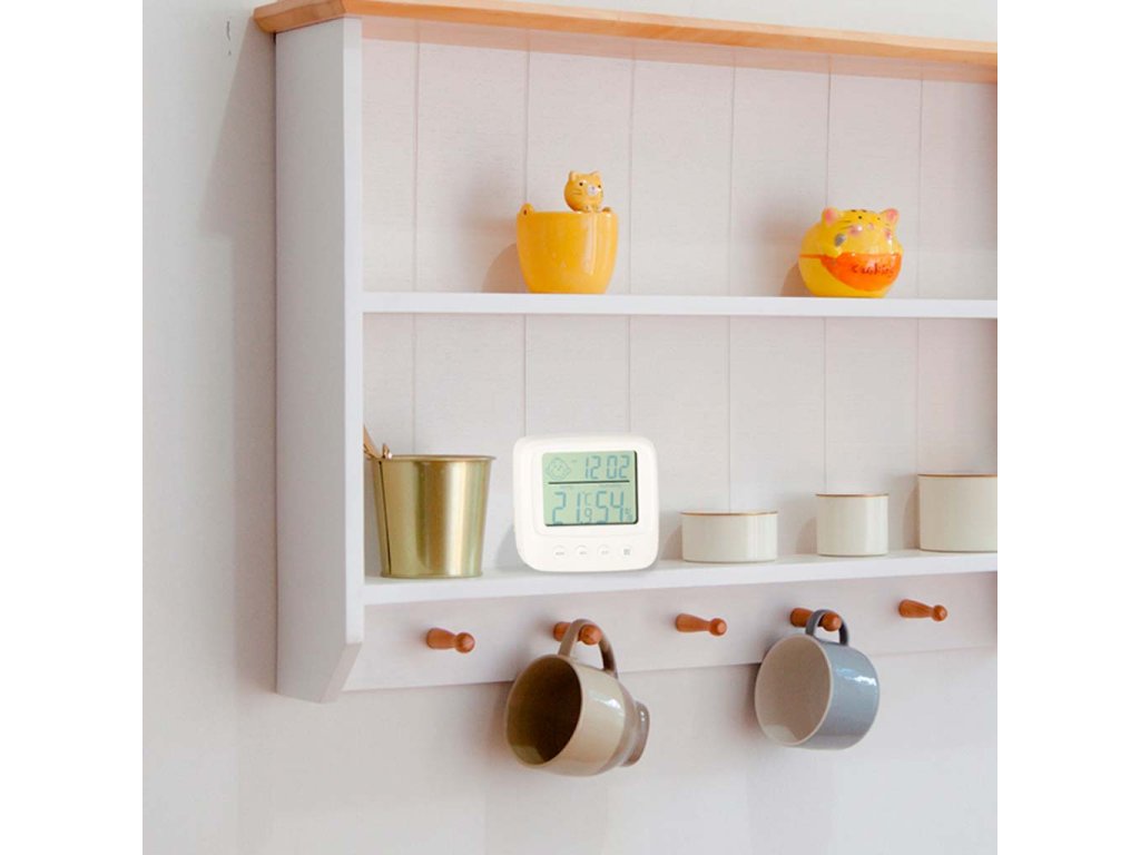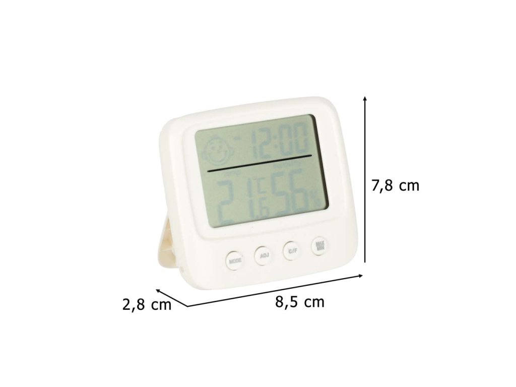 Poleg možnosti merjenja vlažnosti naprava meri tudi temperaturo v prostoru. Poleg tega LCD zaslon vsebuje tudi ure z budilko. Izdelek lahko zato nadomesti več naprav - ne samo, da prihrani prostor na vaši mizi ali v omari, ampak bo tudi velika udobnost, ki vam bo pomagala nadzorovati pogoje v vašem domu.