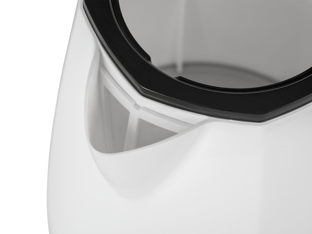 Izdelek ima vrtljivo osnovo, kar zagotavlja udobje uporabe tako desničarjem kot levičarjem. Samodejni izklop in zaščita pred vklopom brez vode zagotavljata varnost uporabe, osvetlitev med delovanjem pa vas bo opomnila, kdaj je čajnik vklopljen. Izdelek ima odstranljiv filter, ki preprečuje izpust apnenca, ki nastaja med vrenjem vode.