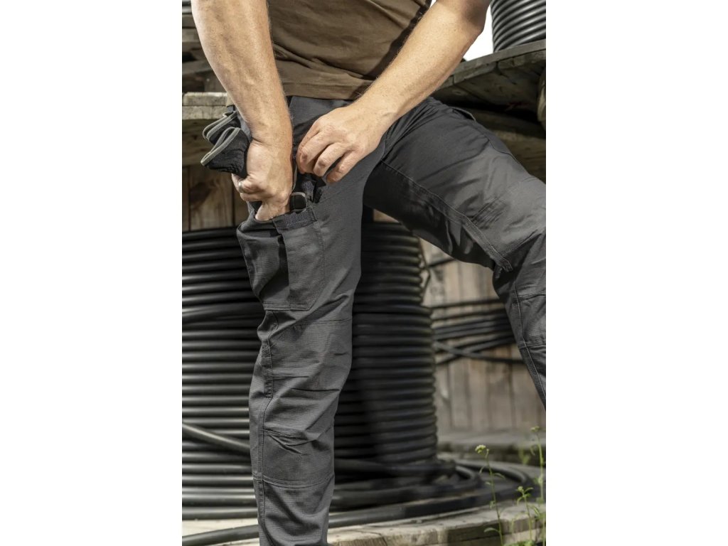 Hlače so opremljene z številnimi funkcionalnimi žepi: dva velika žepa spredaj zagotavljata hiter dostop do nujnih predmetov, stranske multikišne so idealne za orodje, telefon ali ključe, zadnji žepi pa ponujajo dodatno mesto za shranjevanje drobnarij. Tako stranski kot zadnji žepi so zaprti s ježkom, kar zagotavlja vsebini, da ne pade ven.