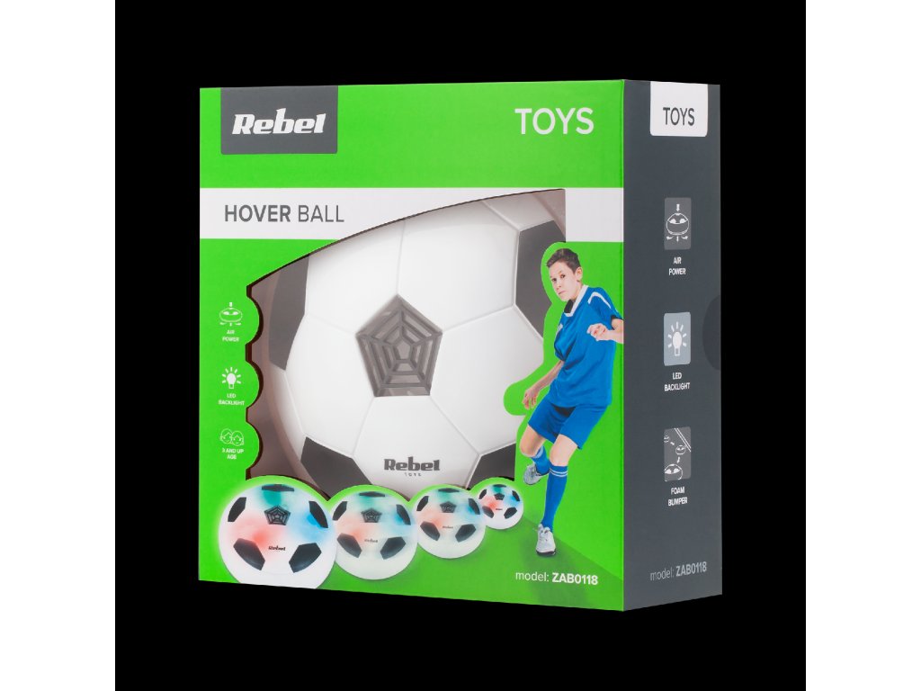 na spodnji strani ustvarja rahli tok zraka, ki omogoča prosto drsenje po katerikoli površini brez praskanja. Naprava ima tudi mehke penaste robove, tako da se varno odbija od pohištva ali sten in jih ne poškoduje.Hoverball Rebel je idealna