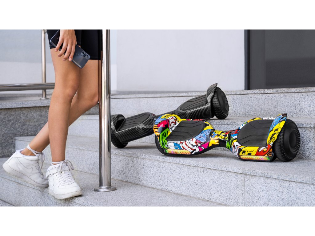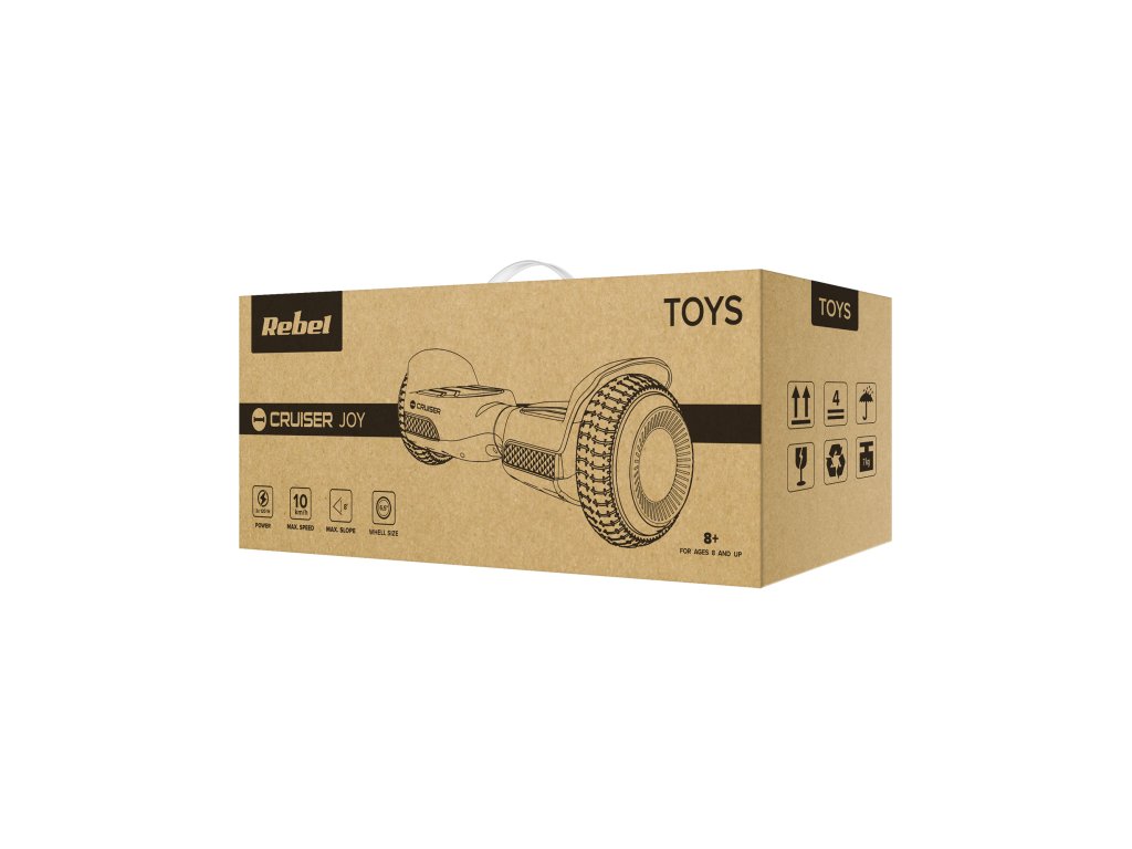 Električna deska Cruiser Joy je opremljena z velikimi 6,5-palčnimi kolesi, pri čemer vsako poganja 120W motor. To vam omogoča pospešiti do 10 km/h in predvsem voziti v hrib z največjim naklonom do 8°.