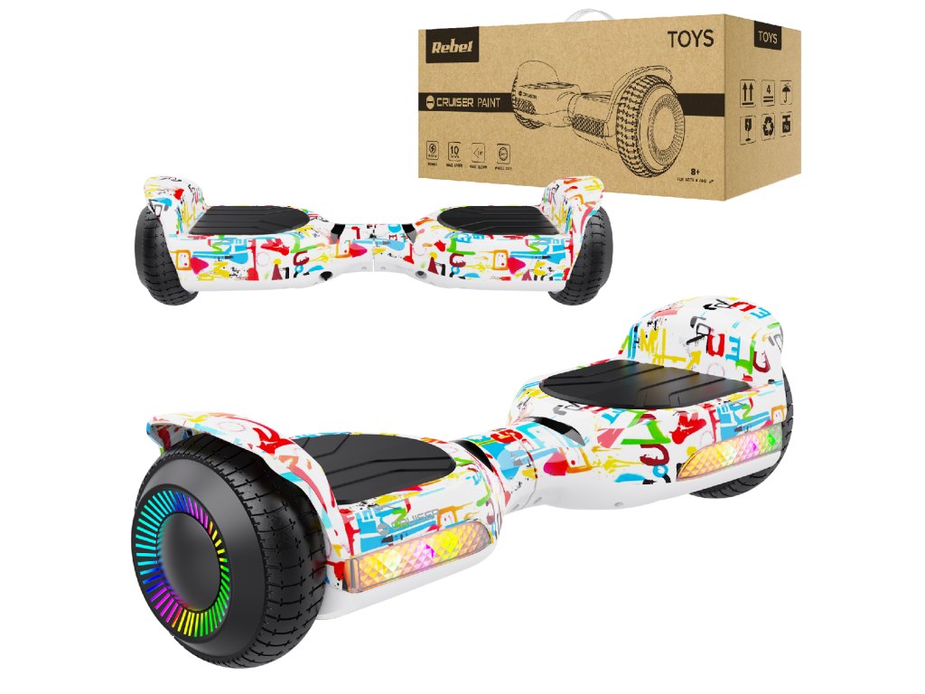Električni Cruiser Paint board je opremljen z velikimi 6,5" kolesi, od katerih vsako poganja 120 W motor. Tako lahko pospešite do 10 km/h in predvsem vozite v hribe z največjim naklonom do 8°.