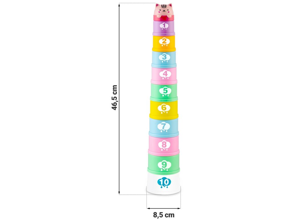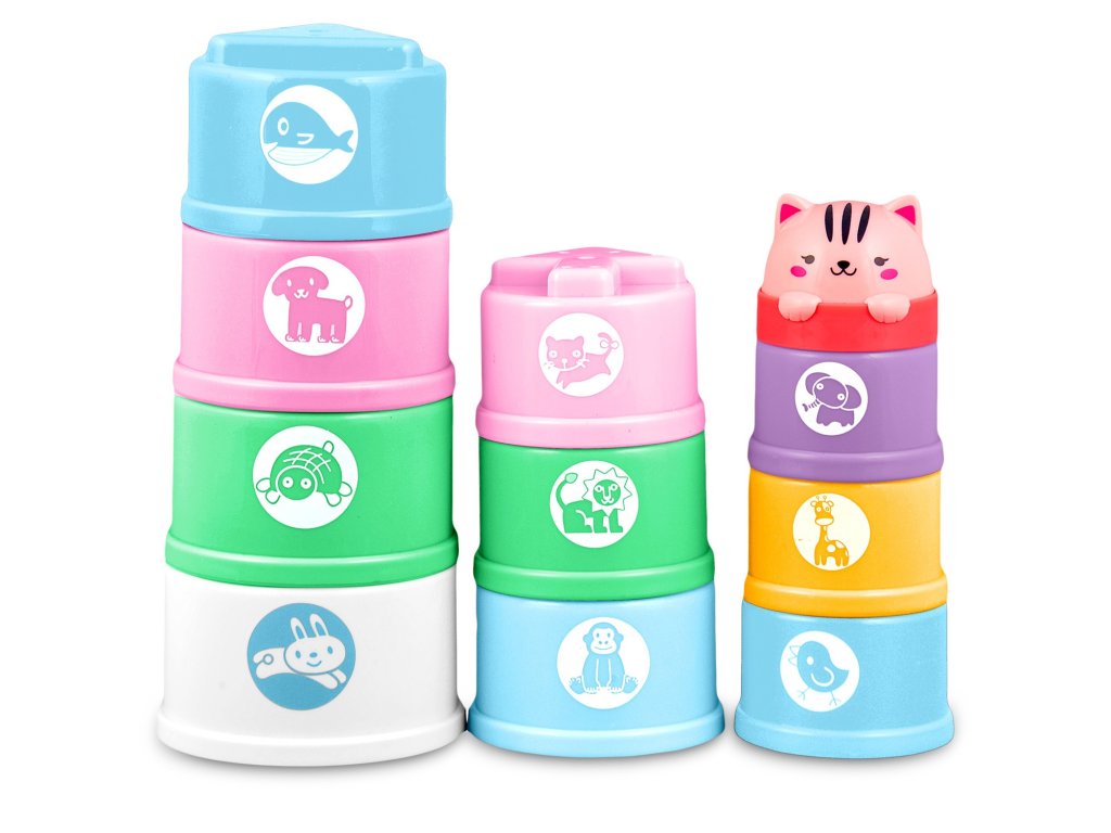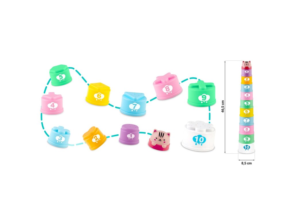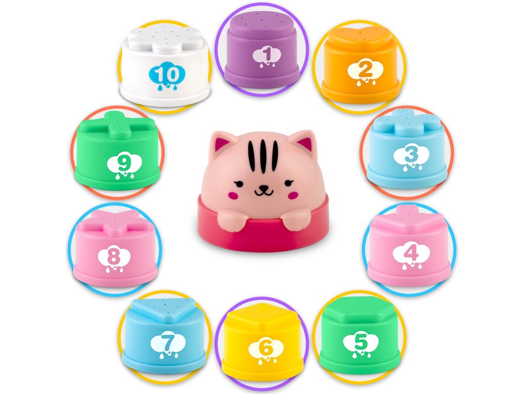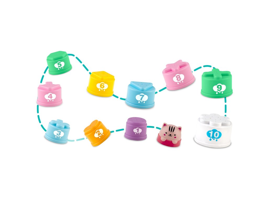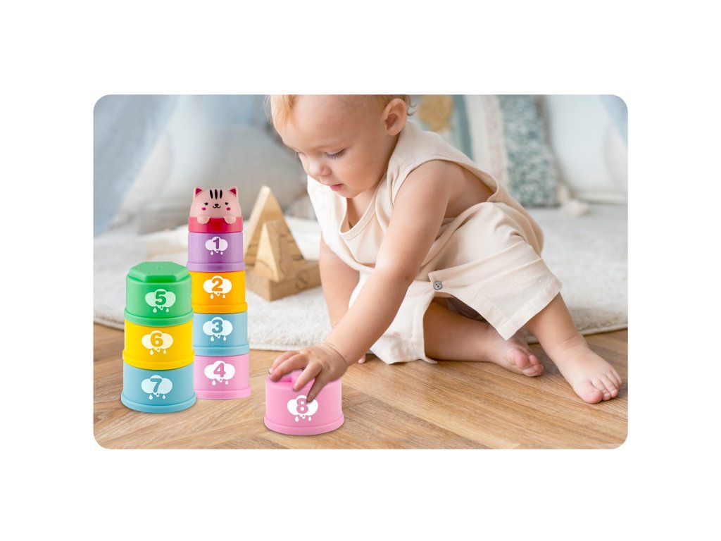 Vsak element je barven. Ta igračka bo vašega otroka zagotovo pritegnila . Struktura lončkov je zasnovana tako, da otrok lahko igračo zagrabi na udoben in intuitiven način. Zabava in razvoj motorike